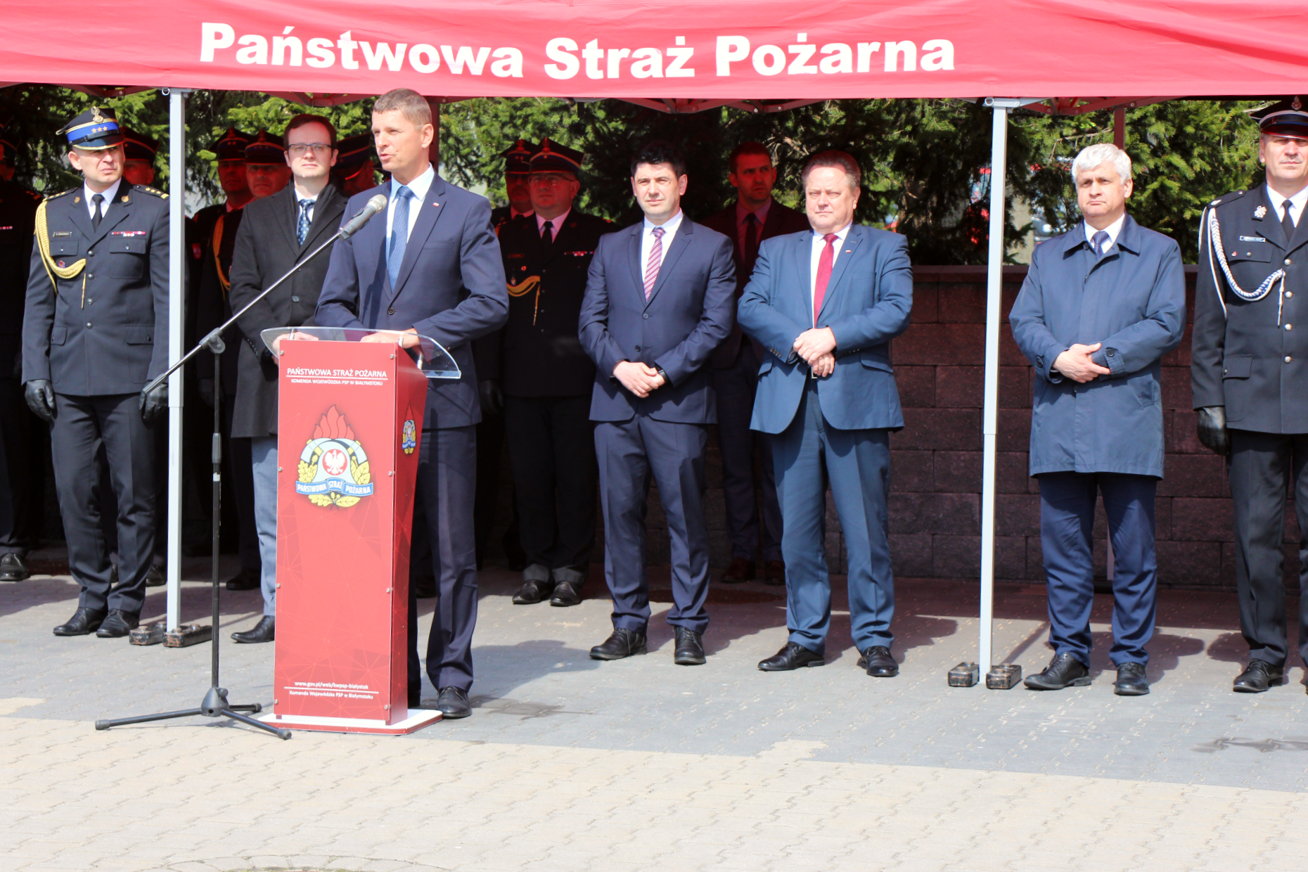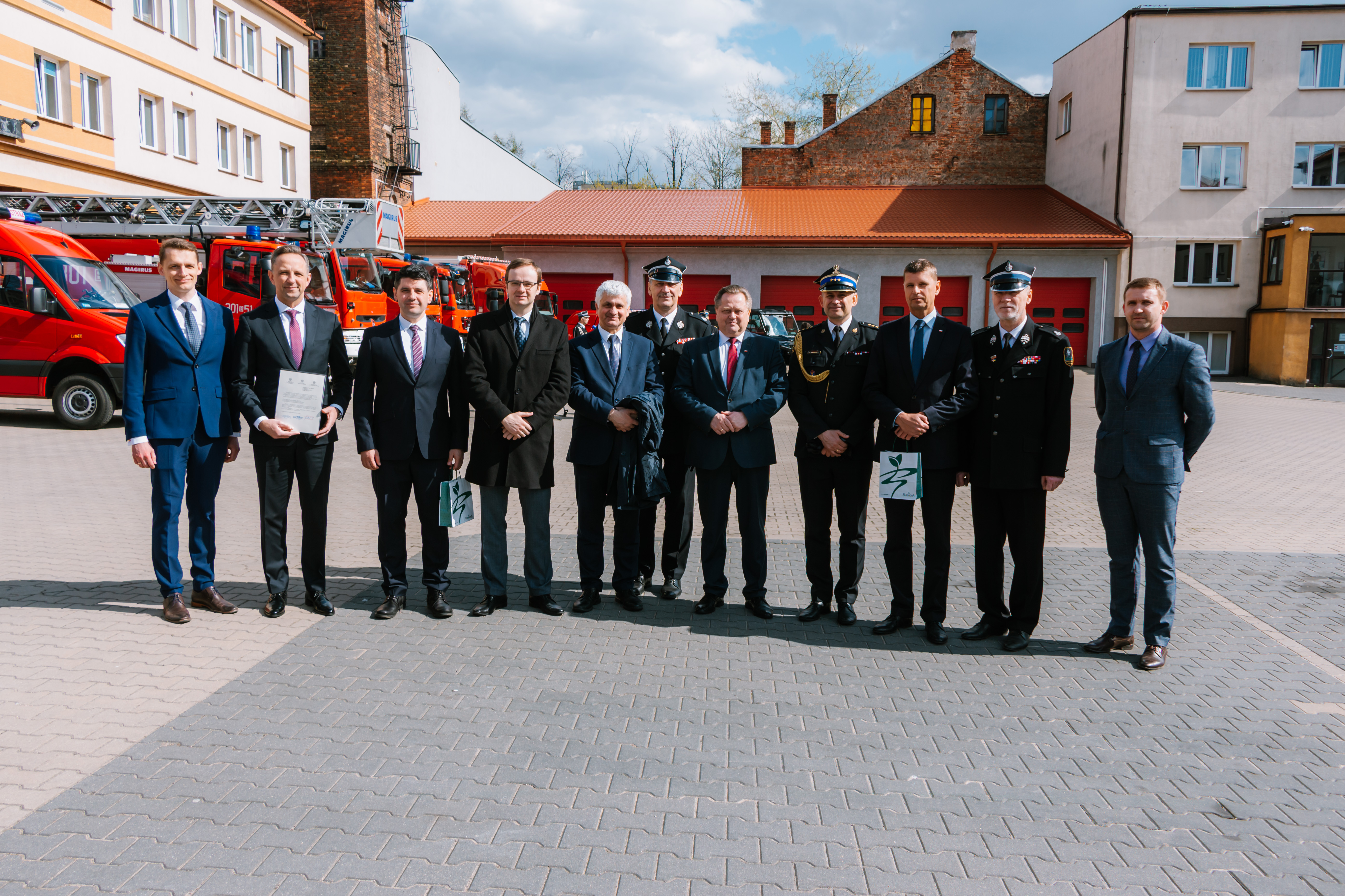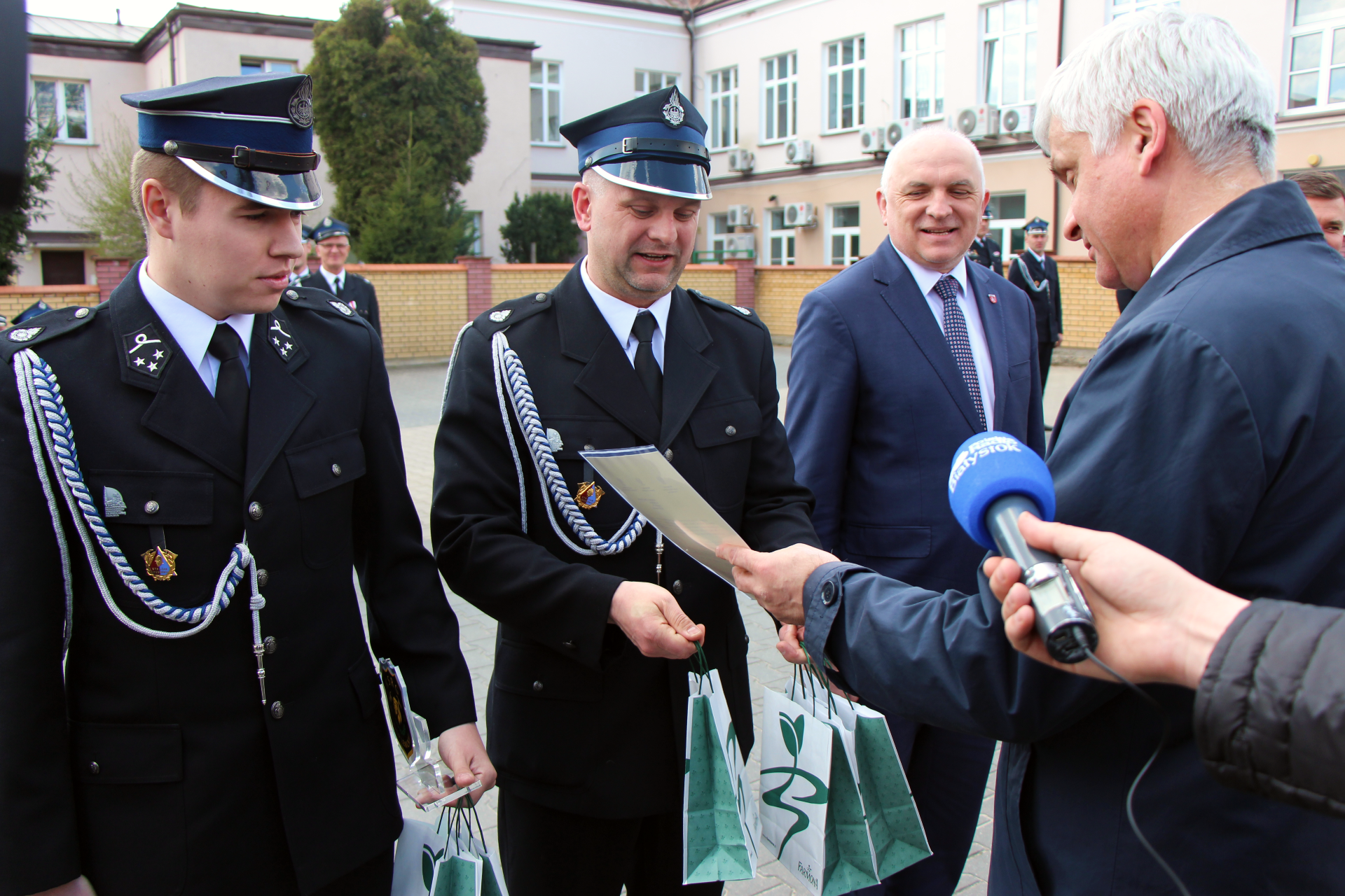 Promesy wręczyli: wojewoda podlaski Bohdan Paszkowski, prezes Zarządu WFOŚIGW w Białymstoku Maciej Borzyszkowski oraz Podlaski Komendant Wojewódzki PSP st, bryg. Sebastian Zdanowicz.