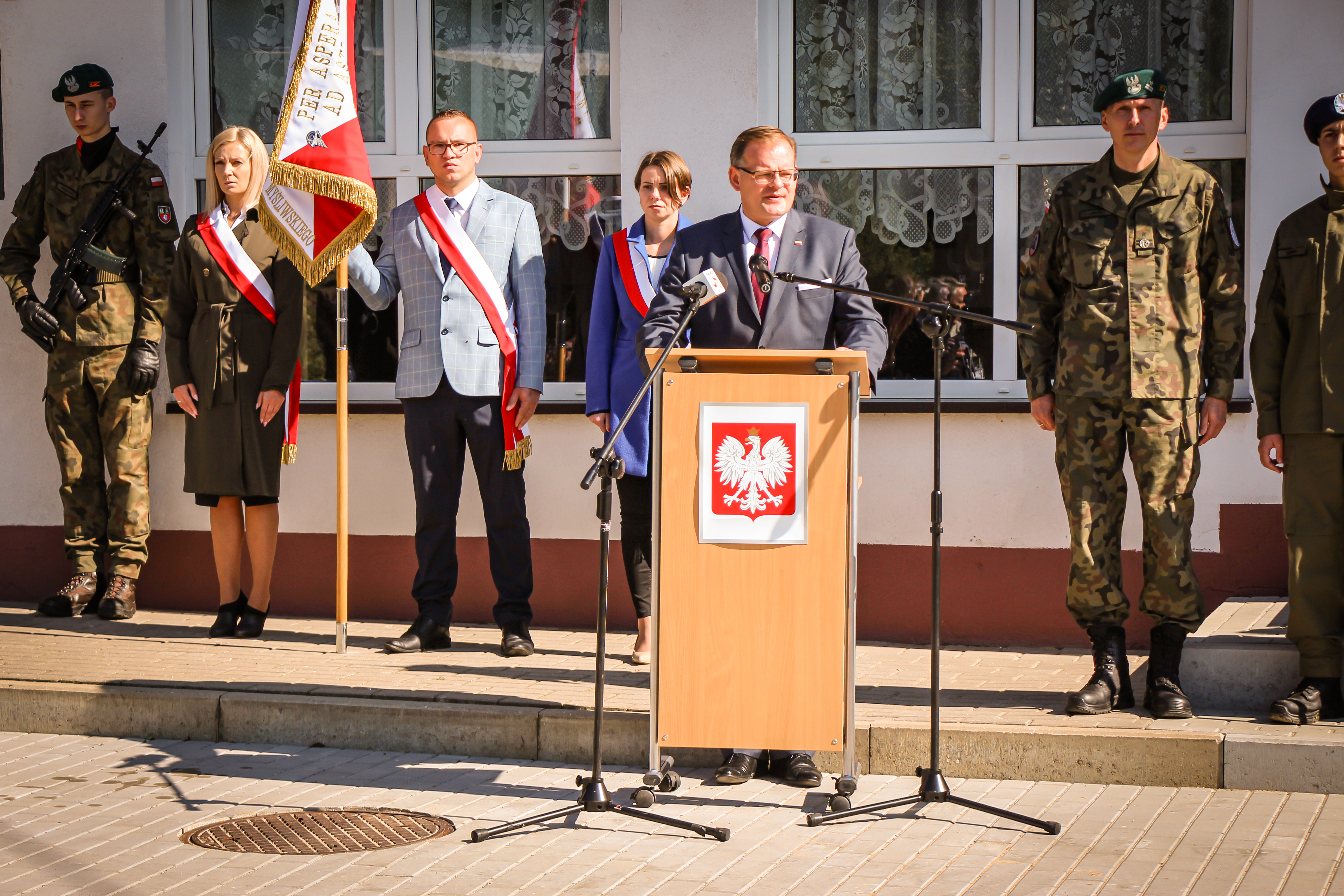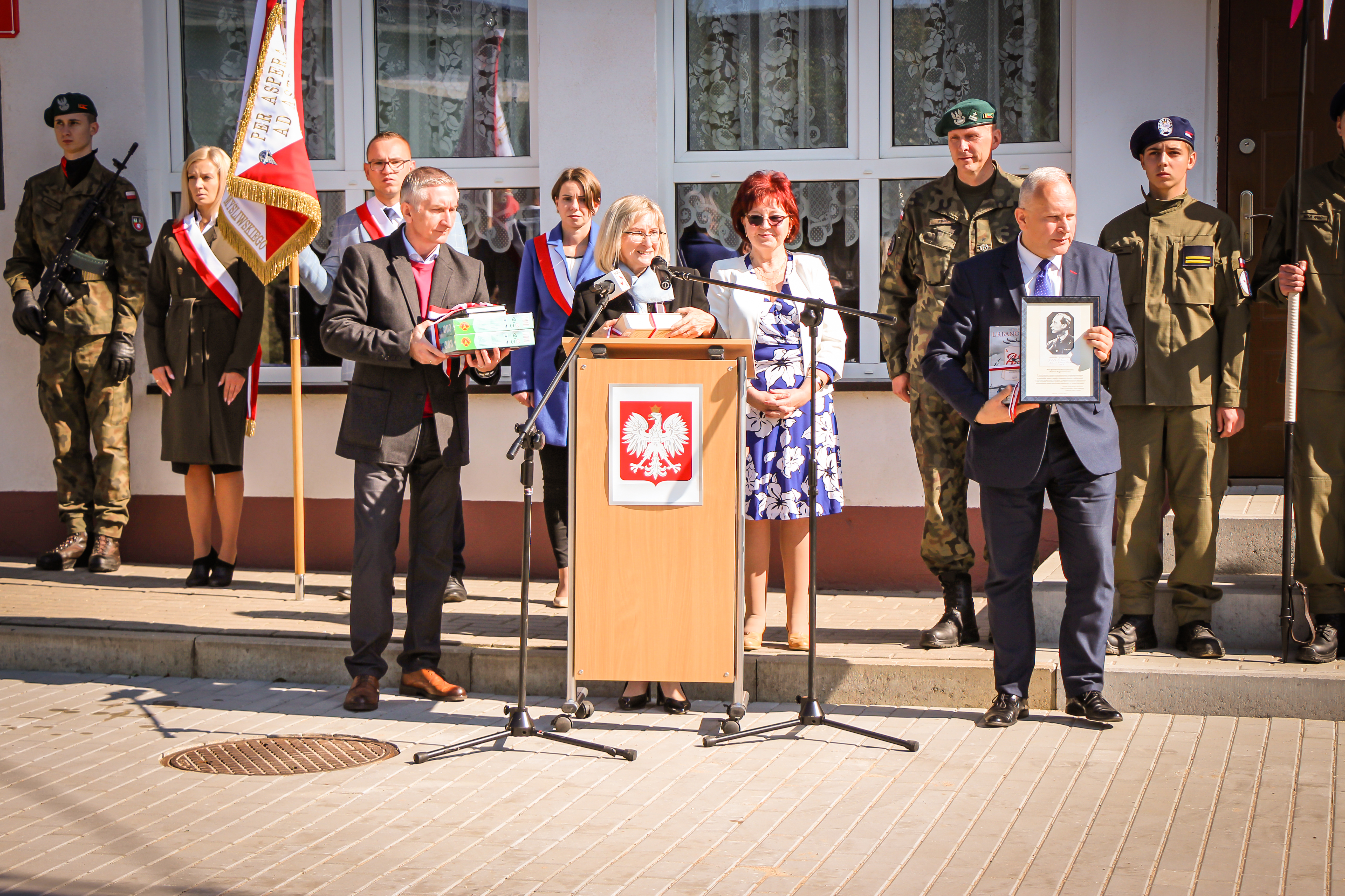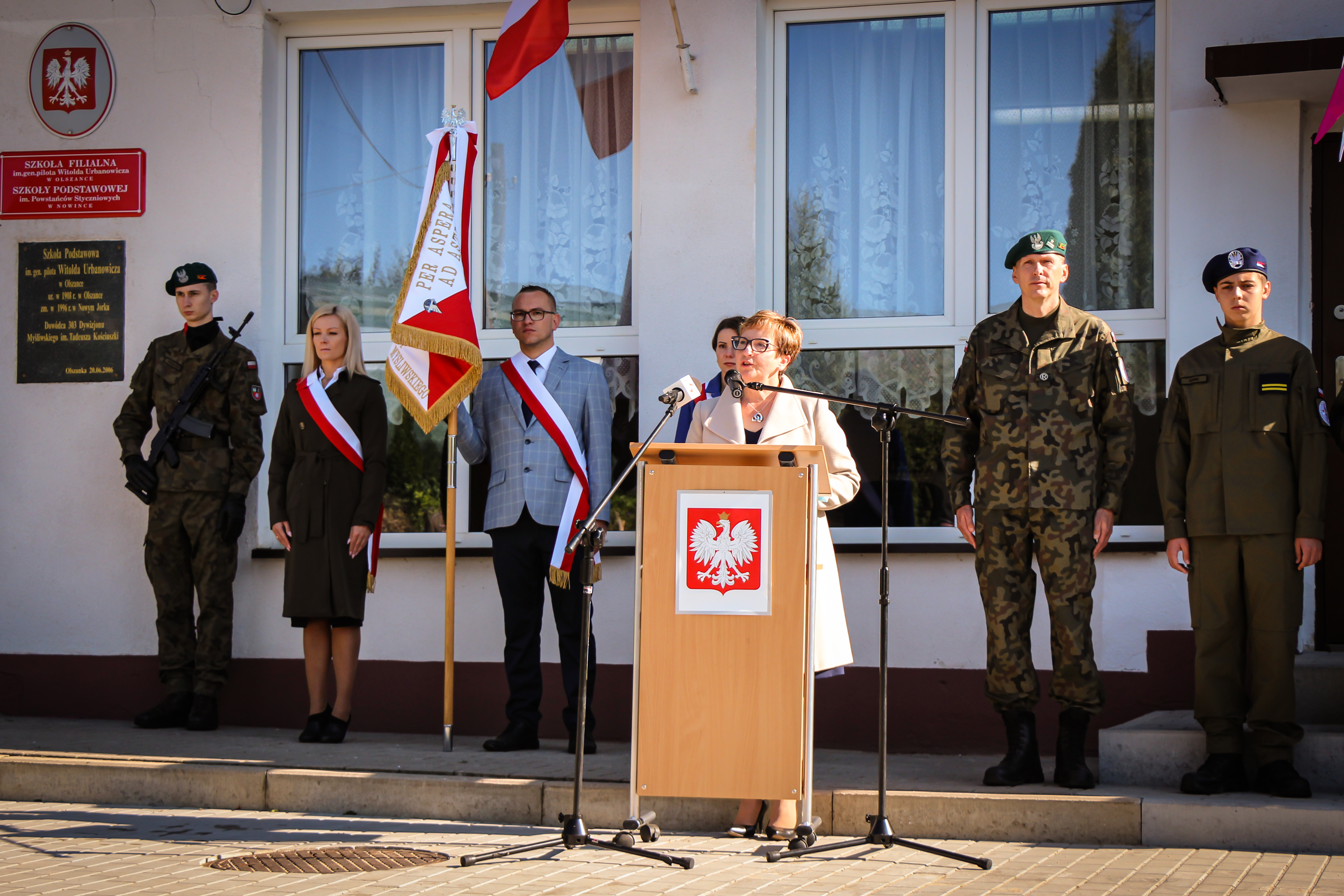 Ta uroczystość jest adresowana i dedykowana wam, drodzy uczniowie, bo to wy poniesiecie Polskę w przyszłość. Wy poniesiecie tę tradycję niepodległościową, którą tworzył i której bohaterem był patron waszej szkoły, gen. Witold Urbanowicz. Syn pobliskiej Ziemi Wileńskiej, marszałek Józef Piłsudski mawiał: naród, który traci pamięć, przestaje być narodem - staje się tylko zbiorowiskiem ludzi, którzy czasowo zajmują dane terytorium. Nasza obecność w tym miejscu, związana z pamięcią o jednym z najodważniejszych i najdzielniejszych synów narodu polskiego i bohaterów II wojny światowej, świadczy o tym, że chcemy być narodem