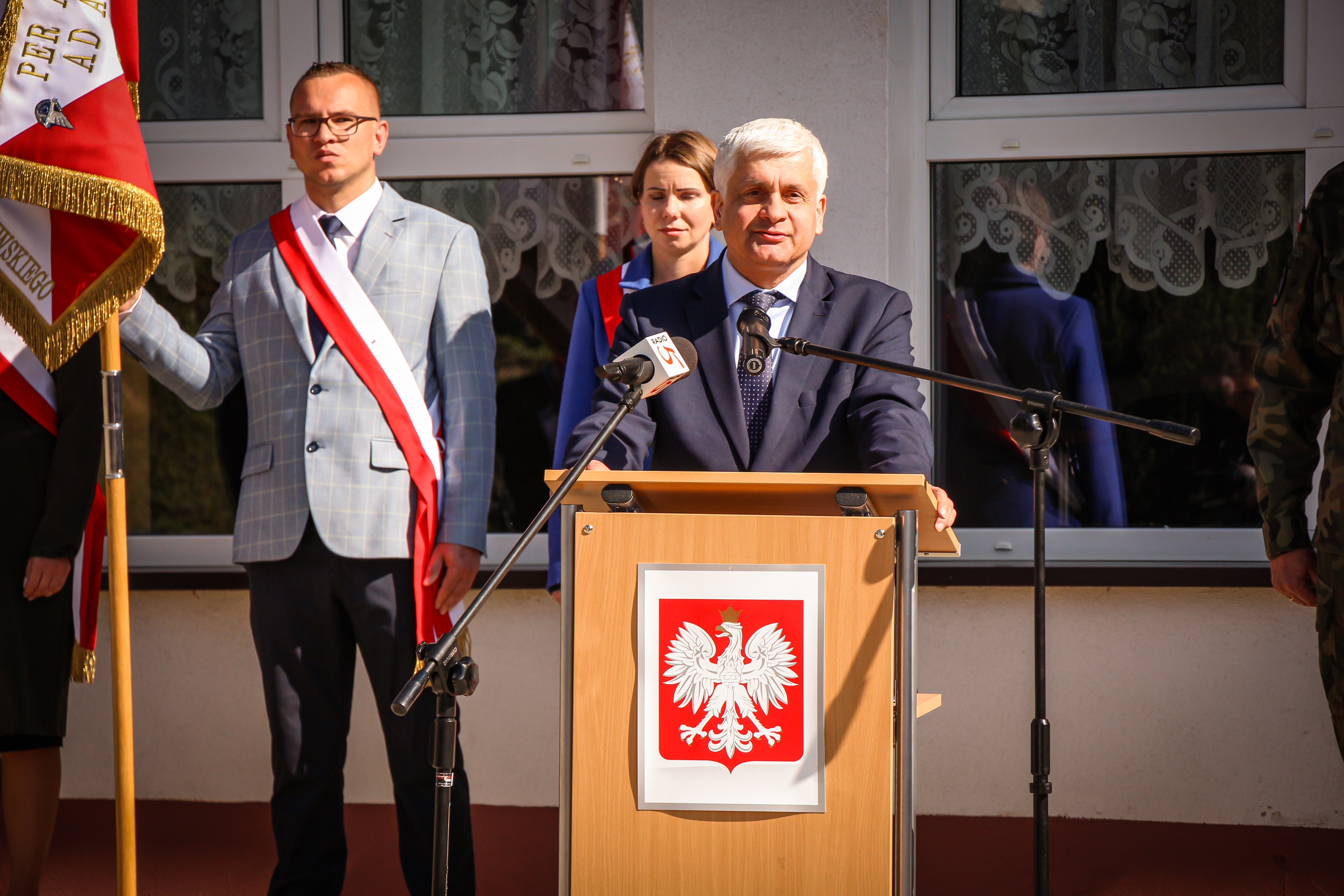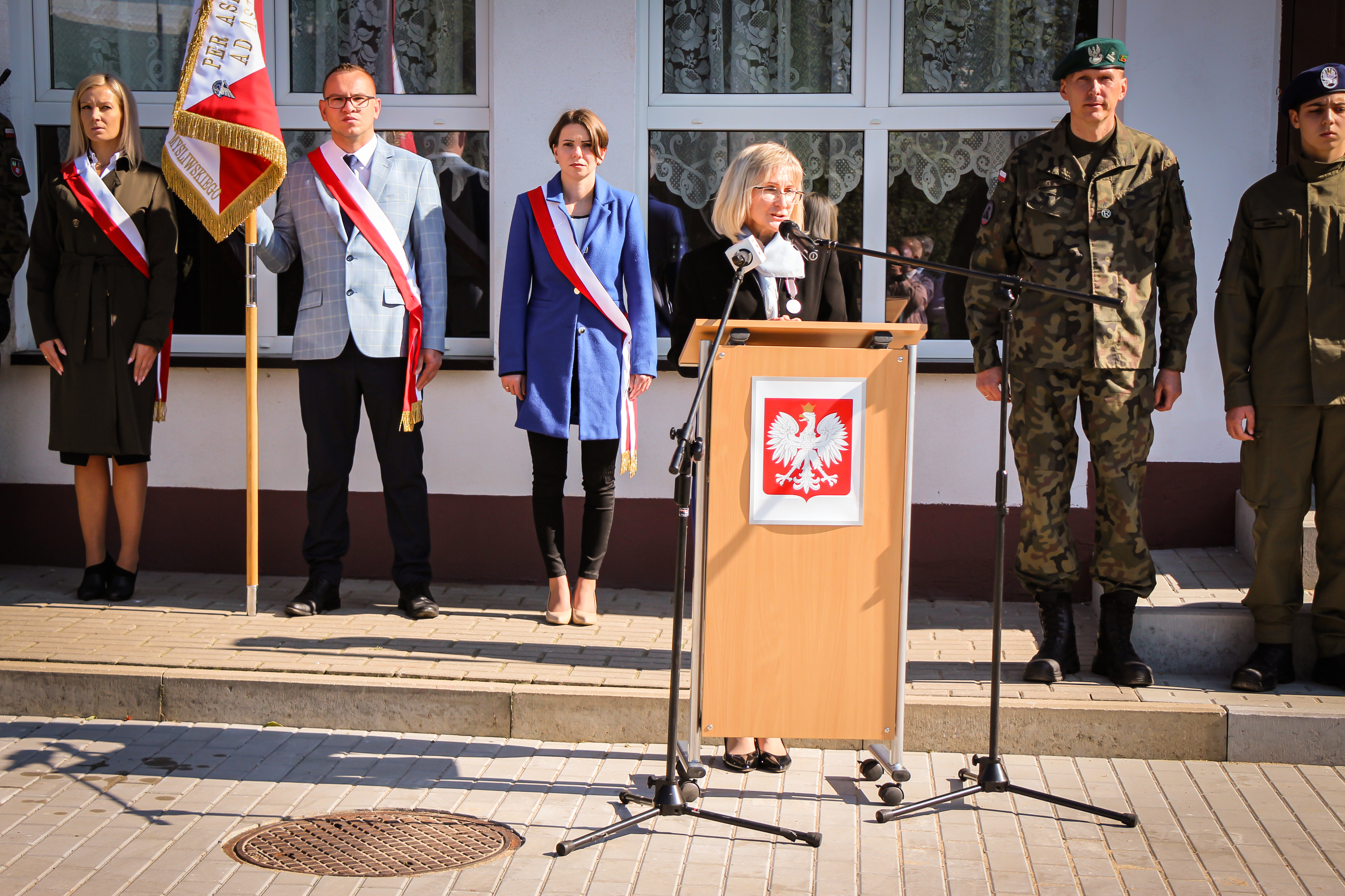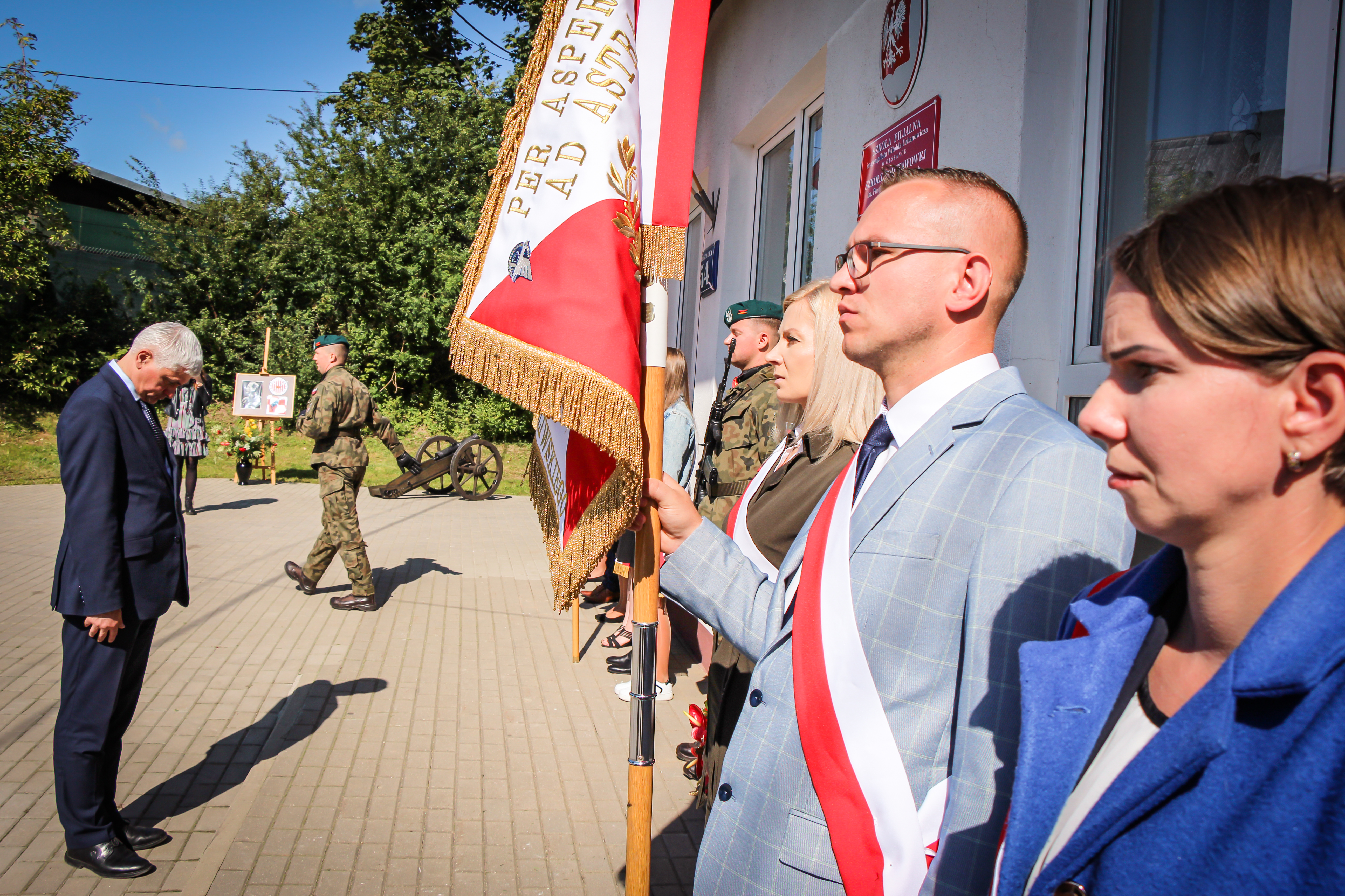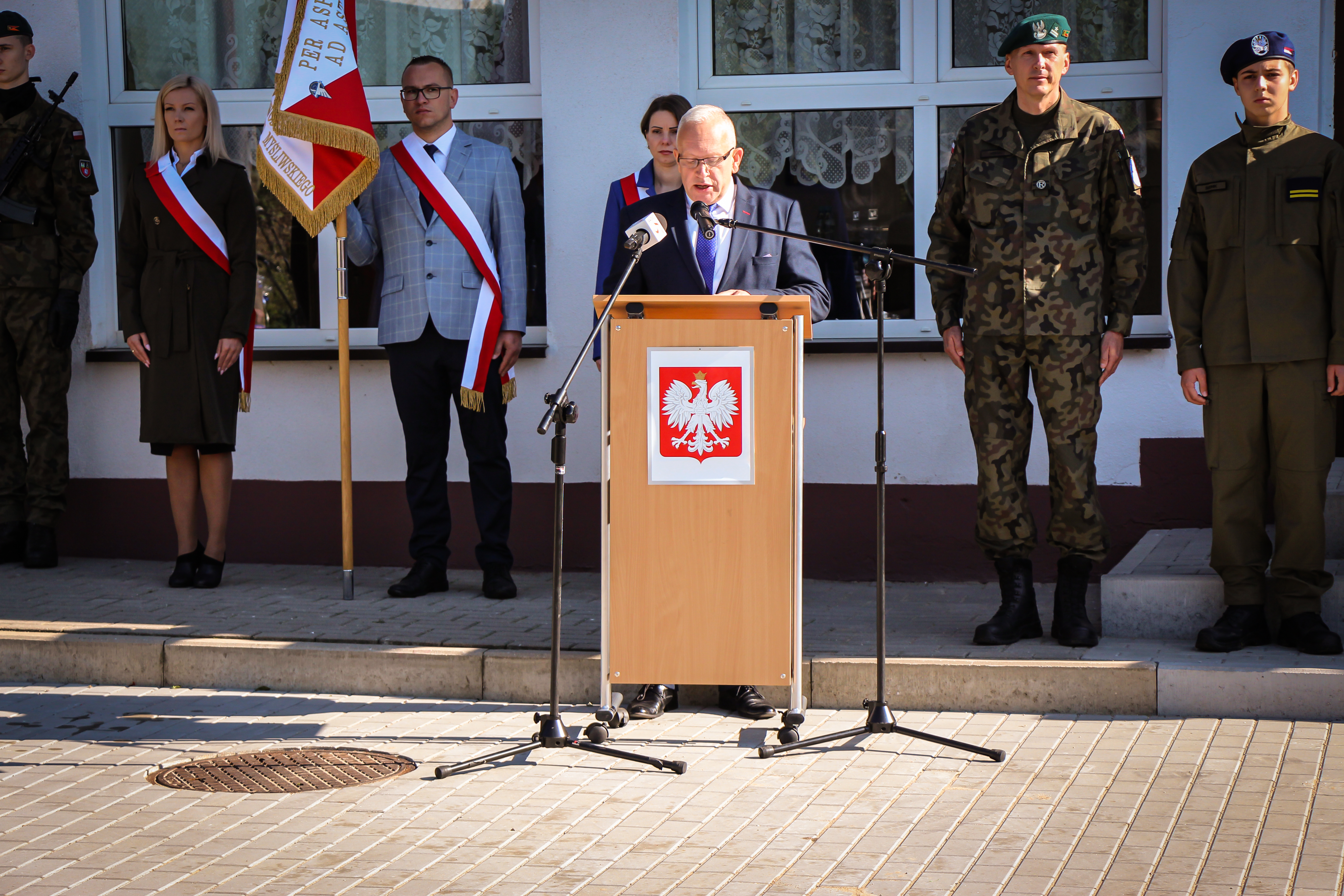 Ta uroczystość jest adresowana i dedykowana wam, drodzy uczniowie, bo to wy poniesiecie Polskę w przyszłość. Wy poniesiecie tę tradycję niepodległościową, którą tworzył i której bohaterem był patron waszej szkoły, gen. Witold Urbanowicz. Syn pobliskiej Ziemi Wileńskiej, marszałek Józef Piłsudski mawiał: naród, który traci pamięć, przestaje być narodem - staje się tylko zbiorowiskiem ludzi, którzy czasowo zajmują dane terytorium. Nasza obecność w tym miejscu, związana z pamięcią o jednym z najodważniejszych i najdzielniejszych synów narodu polskiego i bohaterów II wojny światowej, świadczy o tym, że chcemy być narodem
