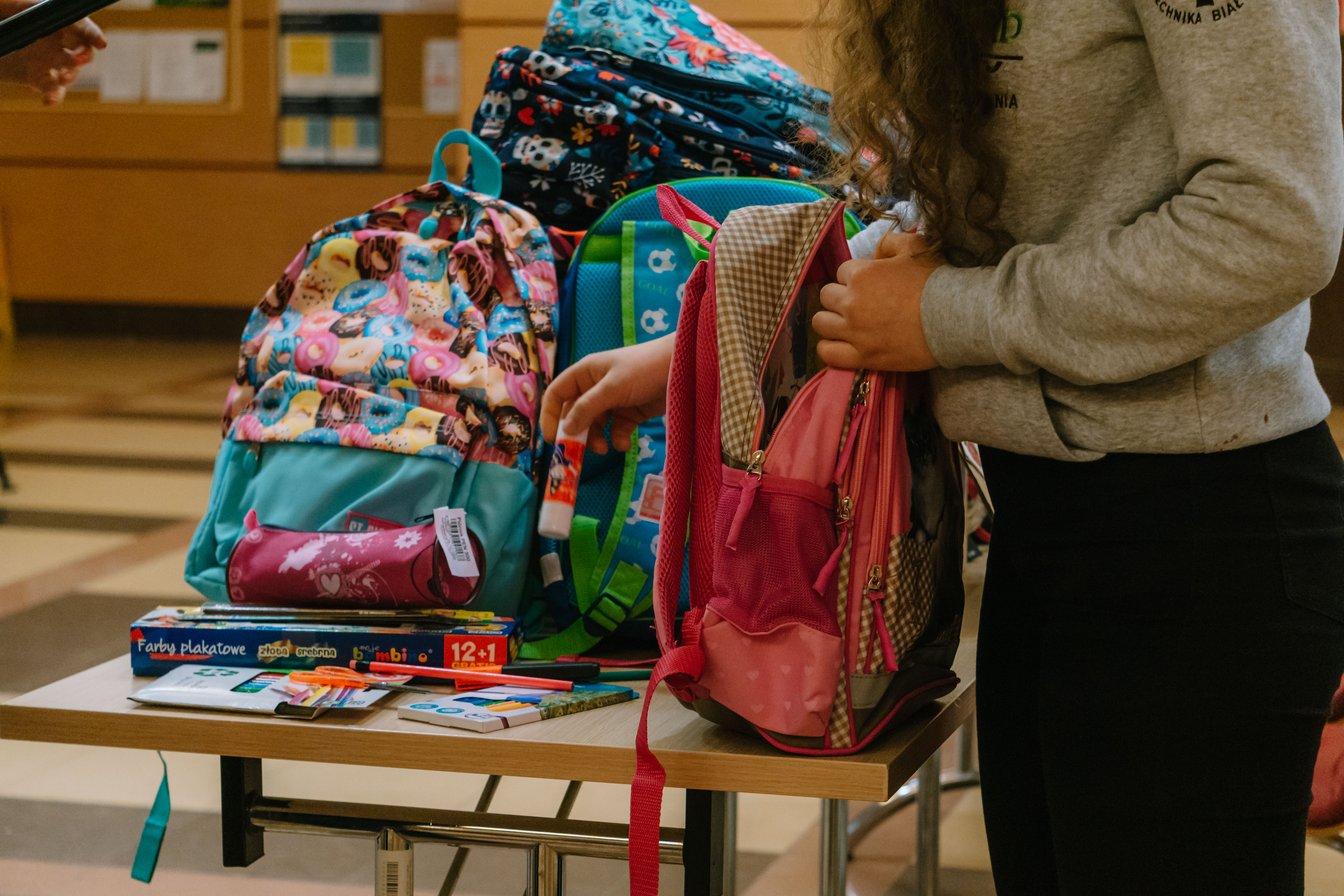 35 plecaków, a w nich szkolne wyprawki to efekt trzydniowej zbiórki studentów Politechniki Białostockiej, którzy postanowili w ten sposób pomóc uchodźcom z Ukrainy. Dary przekazali do Podlaskiego Urzędu Wojewódzkiego, skąd trafią do dzieci i młodzieży zakwaterowanych w ośrodkach wojewody podlaskiego.