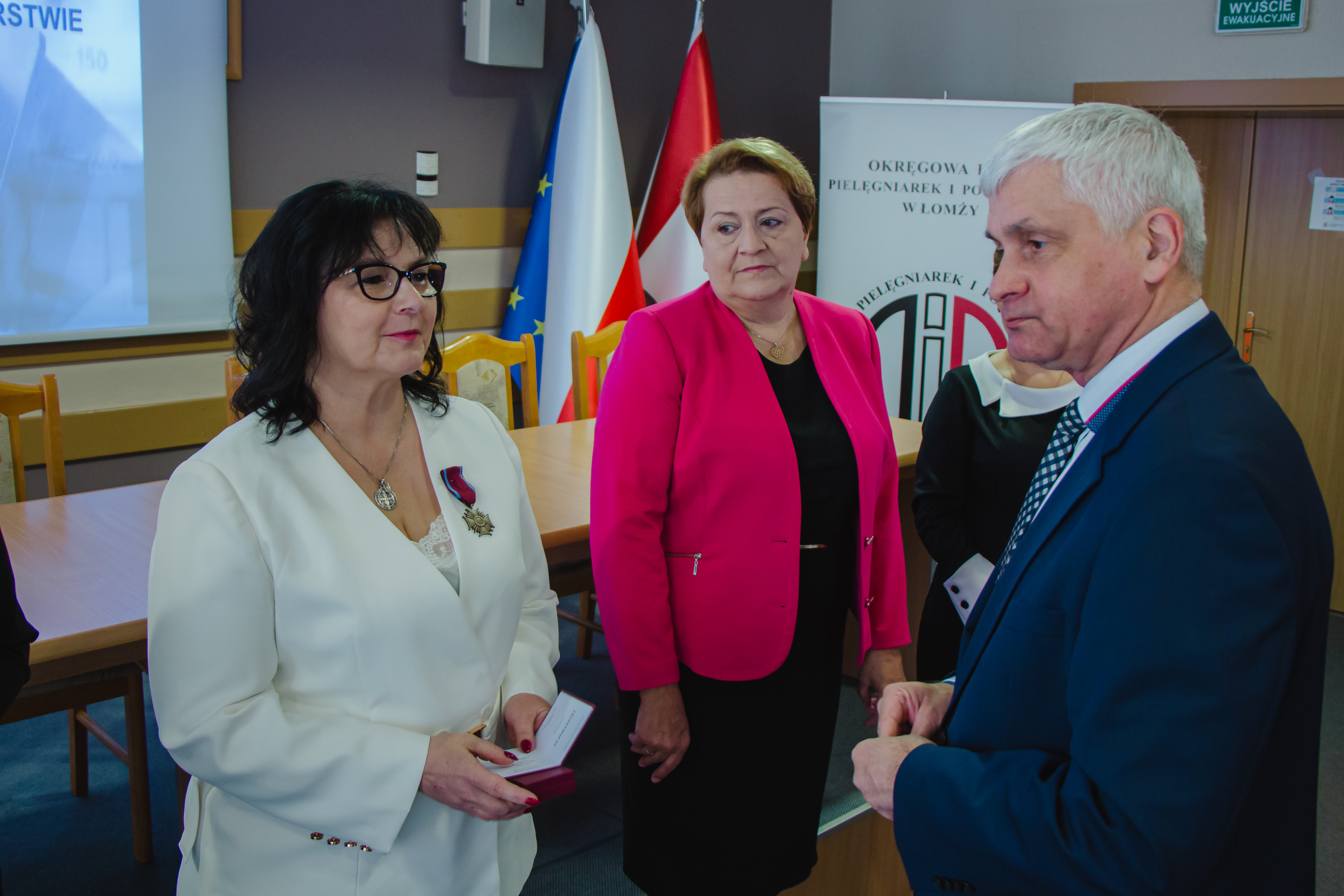 Postanowieniem Prezydenta RP, na wniosek Wojewody Podlaskiego, za zasługi w działalności na rzecz ochrony zdrowia Brązowym Krzyżem Zasługi odznaczone zostały Beata Kowalewska i Jolanta Łodzińska. Odznaki honorowe Ministra Zdrowia "Za zasługi dla ochrony zdrowia" otrzymały natomiast Ewa Fiega i Ewa Sieniawska. Wojewoda Bohdan Paszkowski pogratulował wyróżnionym, złożył życzenia kolejnych sukcesów w życiu prywatnym i zawodowym oraz podziękował za ich dotychczasową pracę, podkreślając istotną rolę pielęgniarek i położnych w organizacji ochrony zdrowia.