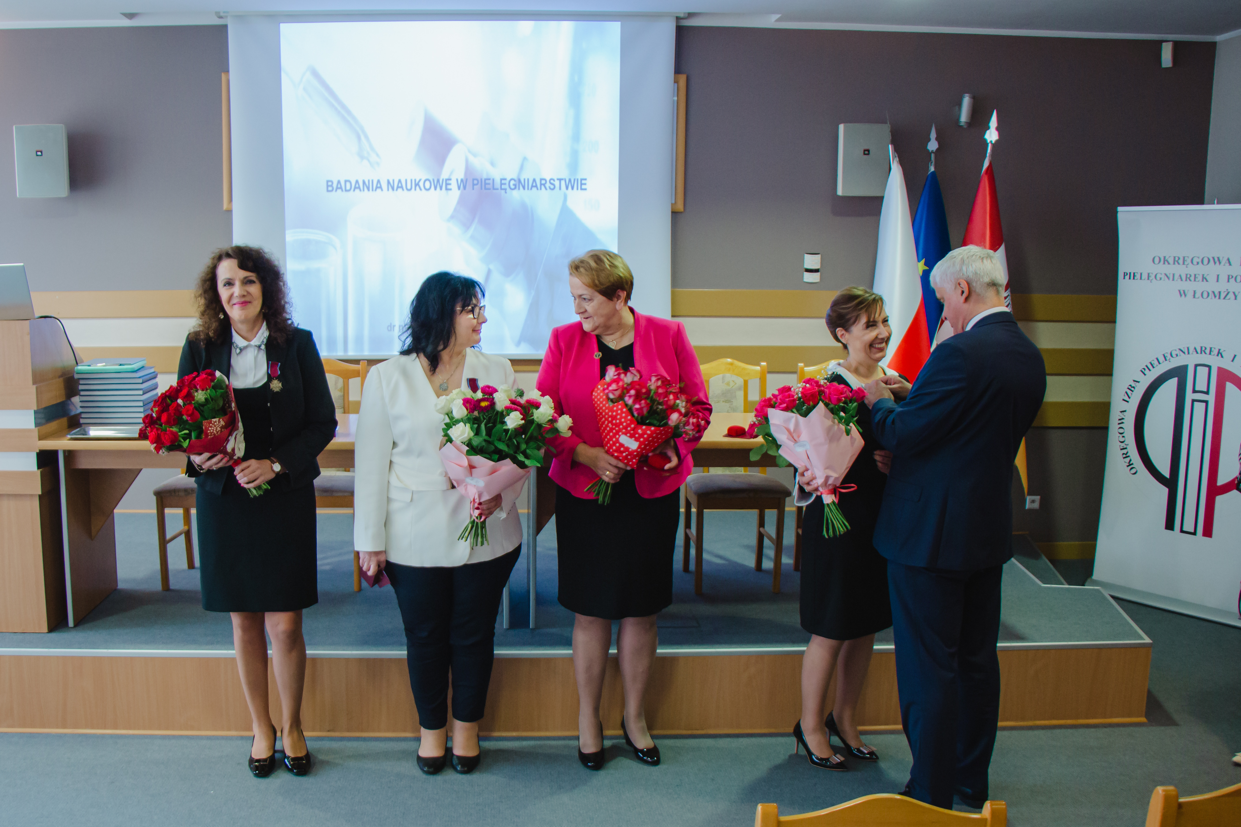 Wojewoda nawiązał w ten sposób do przedmiotu konferencji zorganizowanej przez Okręgową Izbę Pielęgniarek i Położnych w Łomży. O roli pielęgniarki we współczesnym świecie mówiły m.in. odznaczone dr Ewa Fiega, dr hab. Beata Kowalewska, dr hab. Jolanta Łodzińska, a także dr Elżbieta Ortman. Prelegentki zaznaczały, iż praca pielęgniarki to nie tylko profesjonalna opieka nad pacjentem, ale też badania naukowe, które przekładają się na poprawę jakości opieki oraz stanu zdrowia społeczeństwa.