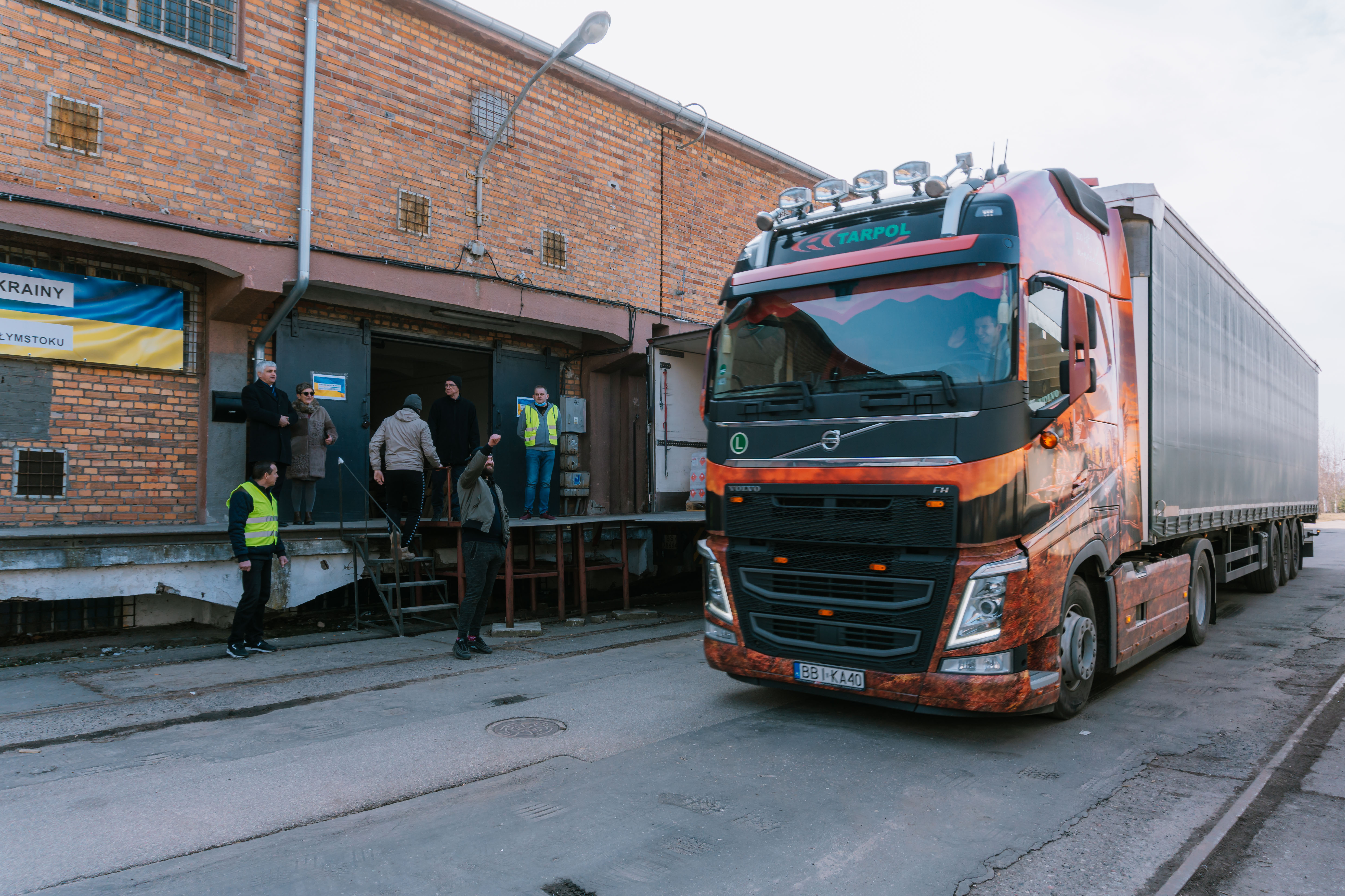 W środę (16.03) z magazynu wojewódzkiego wyruszył pierwszy transport darów na Ukrainę. W tirze, który zapewniło Stowarzyszenie Przewoźników Podlasia, znalazły się 32 palety najpotrzebniejszych artykułów, które za pośrednictwem Rządowej Agencji Rezerw Strategicznych trafią do mieszkańców kraju ogarniętego wojną.