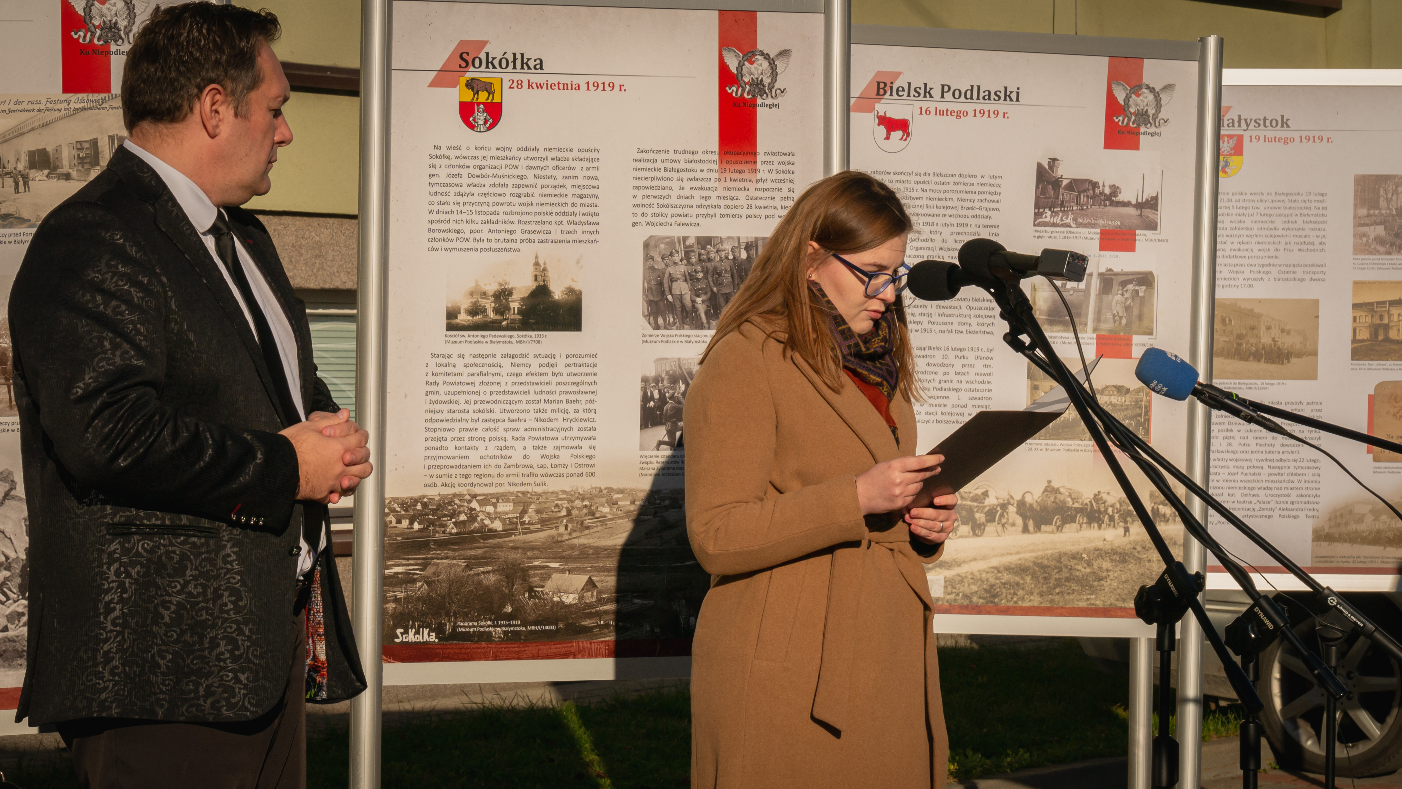 W środę (10.11), w otwarciu wystawy "Wiele dróg - jeden cel. Ku Niepoległej" w Sokółce wzięli udział: pełnomocnik wojewody podlaskiego do spraw Programu Wieloletniego „Niepodległa” Małgorzata Mitura, członek zarządu województwa podlaskiego Wiesława Burnos, starosta sokólski Piotr Rećko oraz młodzież z sokólskich szkół.