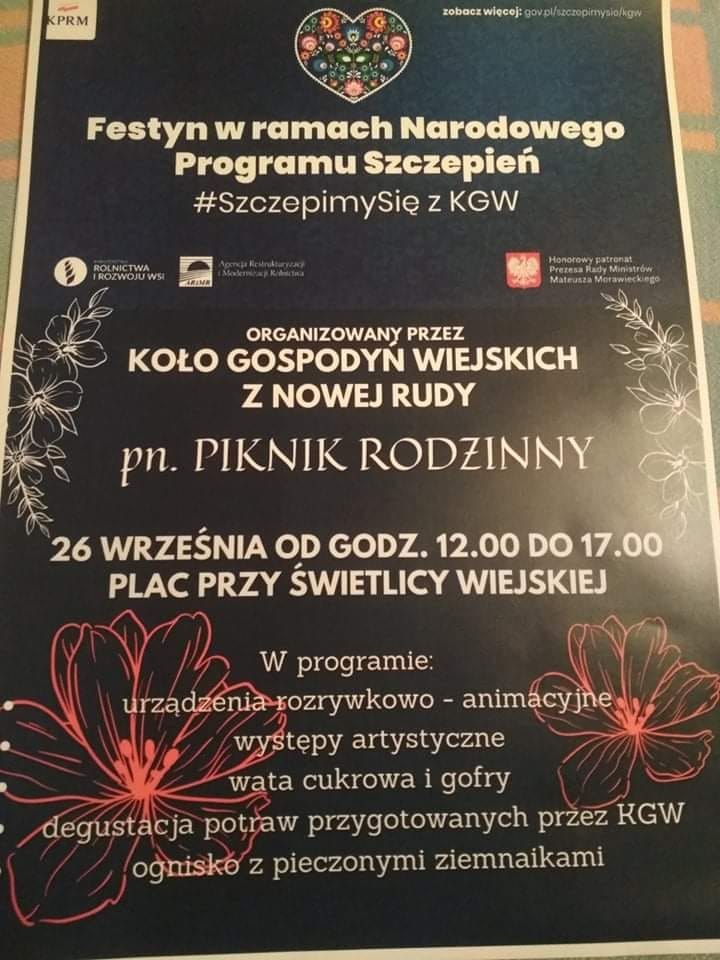 Nowa Ruda (gm. Turośl) - Piknik rodzinny - punkt szczepień na placy przy świetlicy wiejskiej będzie działał od godz. 12 do 17
