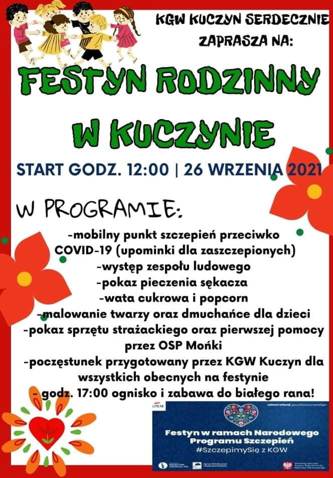 Kuczyn (gm. Mońki) - Festyn rodzinny - punkt szczepień będzie działał od godz. 12 do 17