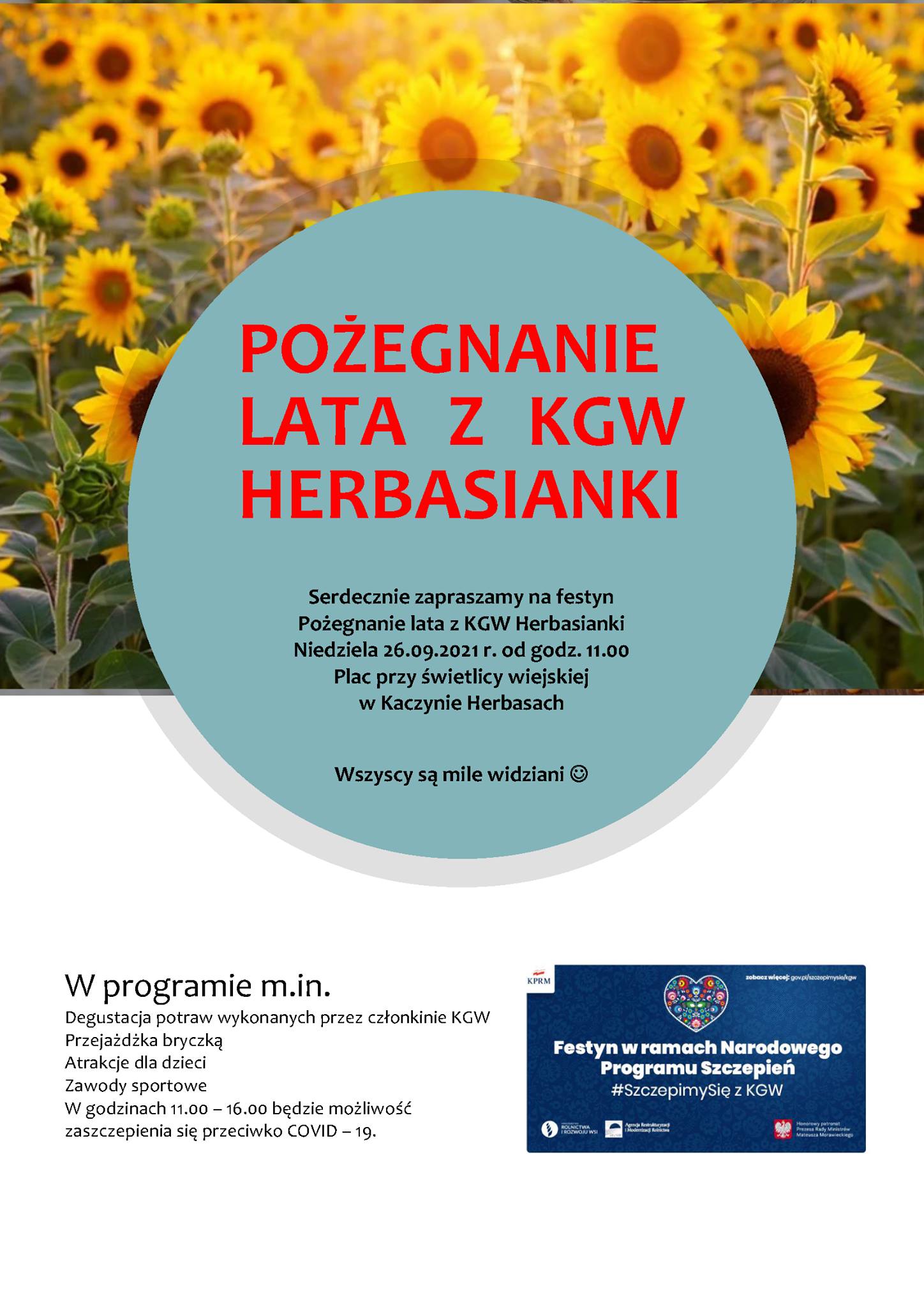 Kaczyń Herbasy (gm. Czyżew) - Pożegnanie lata - punkt szczepień przy świetlicy wiejskiej będzie działał od godz. 11 do 16