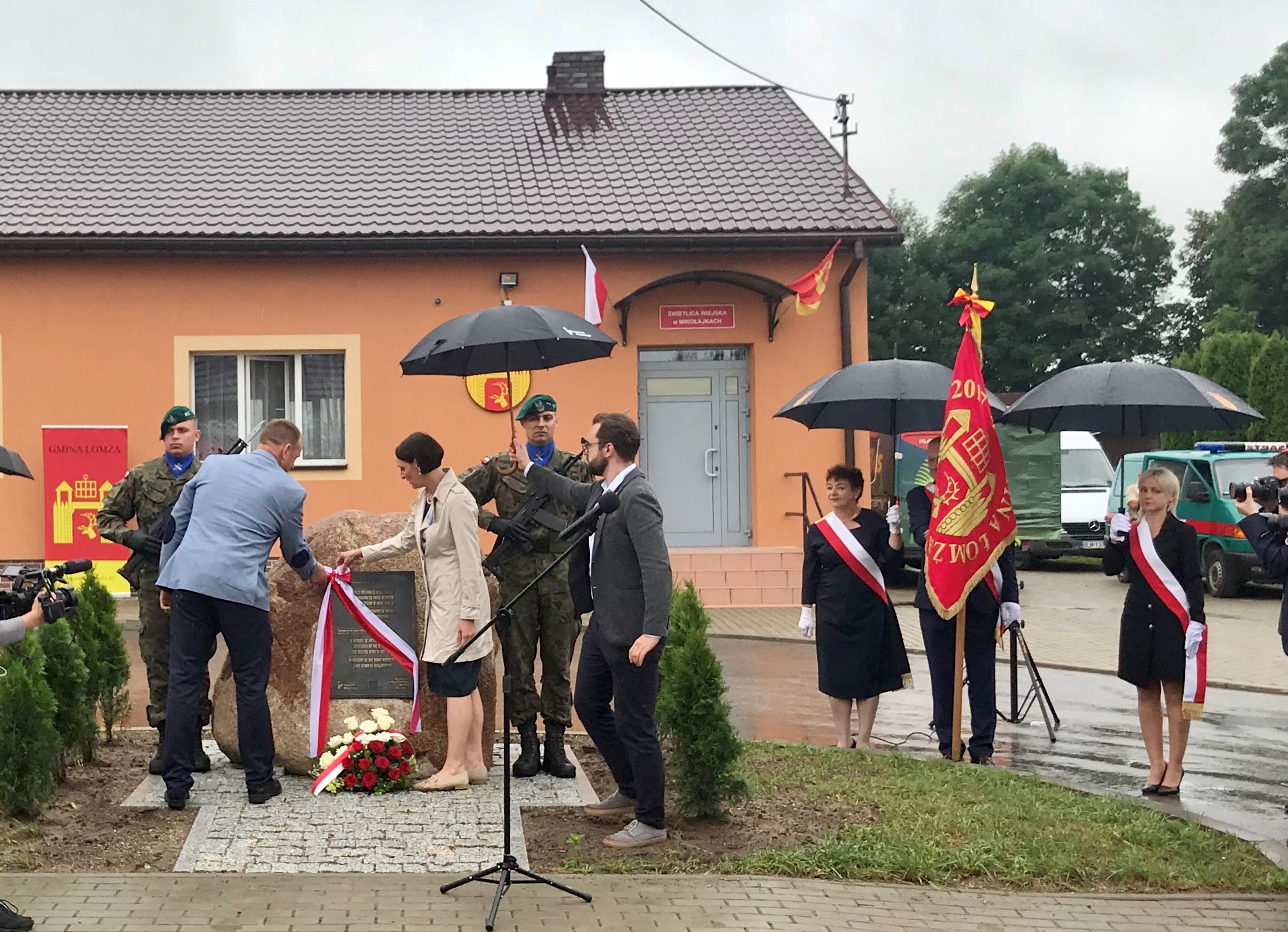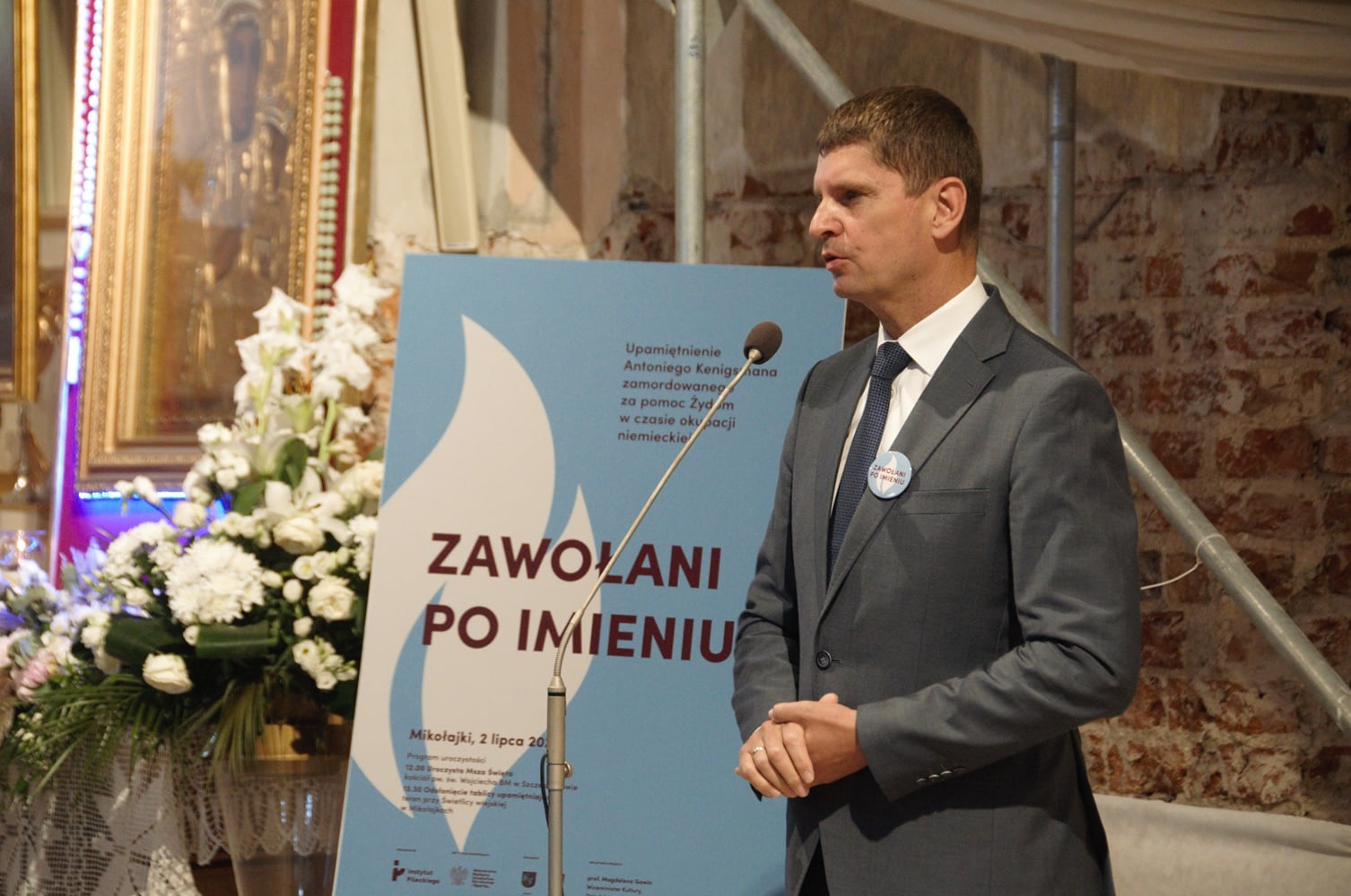 W piątek (2.07), w Mikołajkach (gmina Łomża) uroczyście odsłonięto tablicę upamiętniającą Antoniego Kenigsmana, zamordowanego za pomoc trojgu Żydom w czasie niemieckiej okupacji. Wydarzenie było częścią projektu Instytutu Pileckiego "Zawołani po imieniu". Wzięli w nim udział m.in. wiceminister kultury, dziedzictwa narodowego i sportu prof. Magdalena Gawin - pomysłodawczyni projektu oraz II wicewojewoda podlaski Marcin Sekściński.