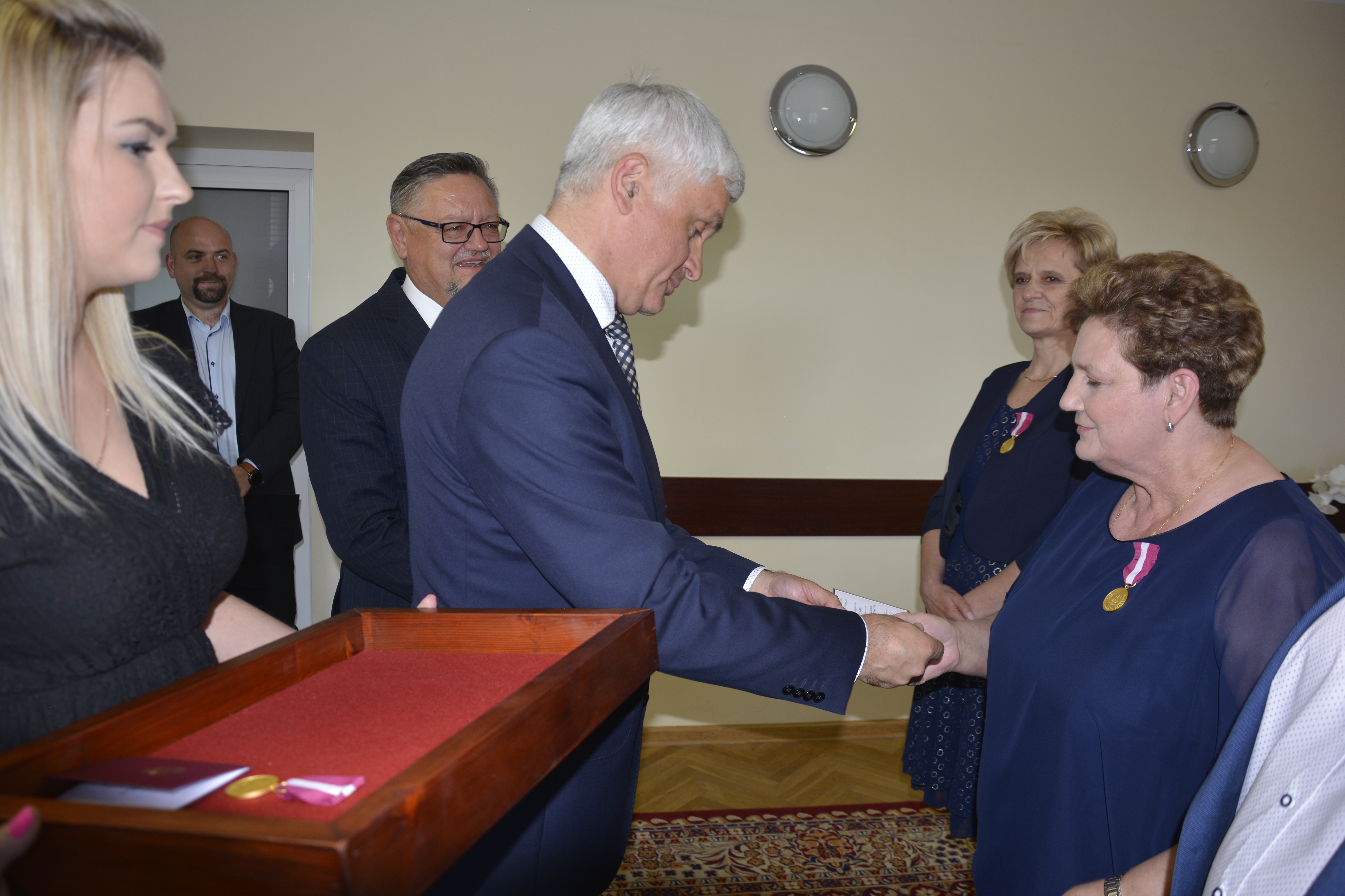 Wojewoda podlaski Bohdan Paszkowski w czwartek (23.07) wręczył w Kolnie trzy Złote Medale za Długoletnią Służbę, przyznane przez prezydenta RP Andrzeja Dudę. Otrzymali je: Janina Podlaska, Bogumiła Ewa Ranik oraz Robert Zieliński za wzorowe, wyjątkowo sumienne wykonywanie obowiązków wynikających z pracy zawodowej w służbie Państwa.