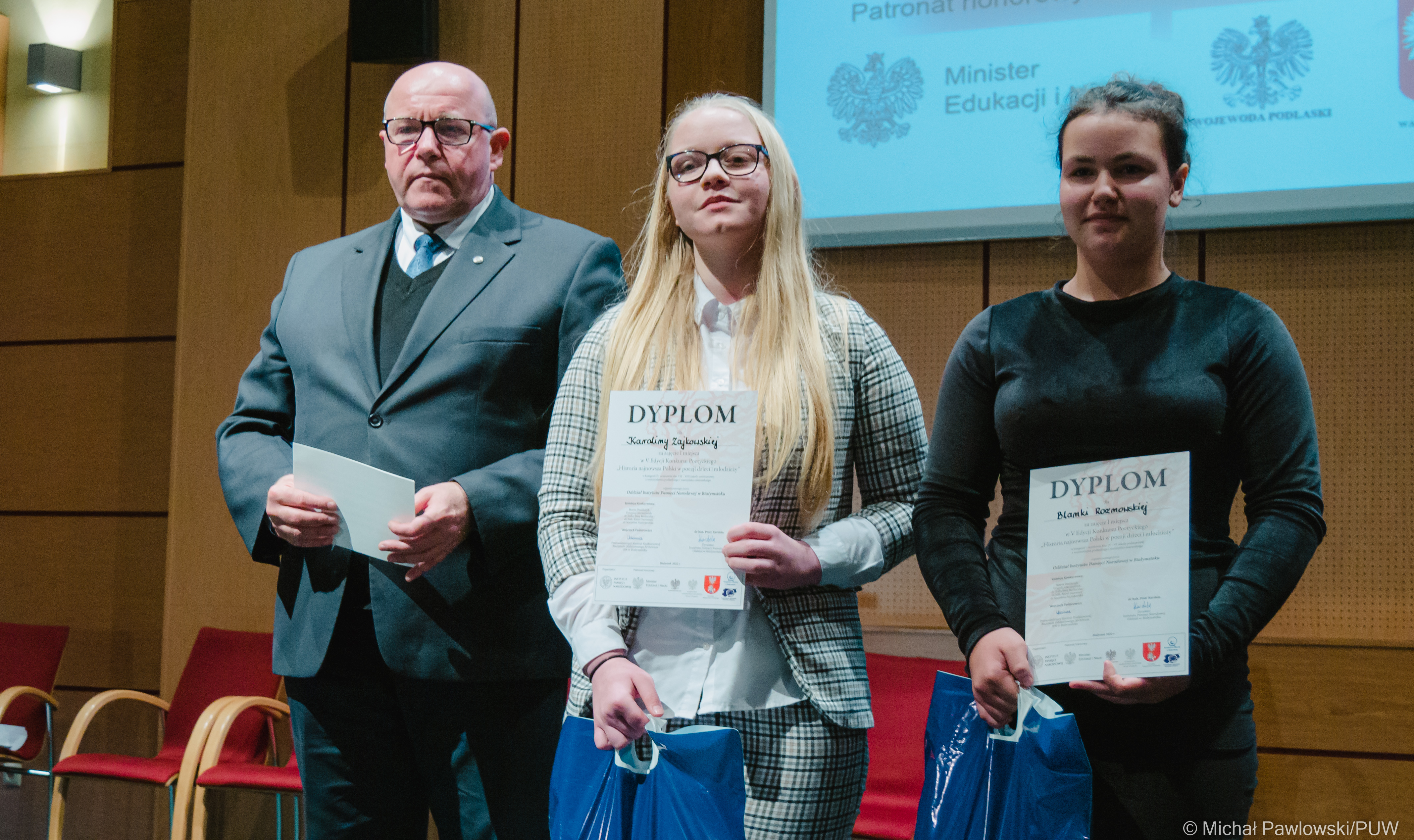 – Życzę, aby uczestnictwo w tym konkursie procentowało. Abyście dzięki niemu rozwijali swoją znajomość historii, talenty literackie oraz patriotyzm. Abyście byli wzorem dla swoich rówieśników. Konkurs obejmuje szeroki zakres polskiej historii – piękne zwycięstwa, odzyskanie niepodległości, ale również jej utracenie. Dziś możemy cieszyć się wolnością, ale musimy pamiętać o tych, którzy stracili za to życie i zdrowie – wojewoda podlaski zwrócił się do laureatów konkursu ,,Historia najnowsza Polski w poezji dzieci i młodzieży”.