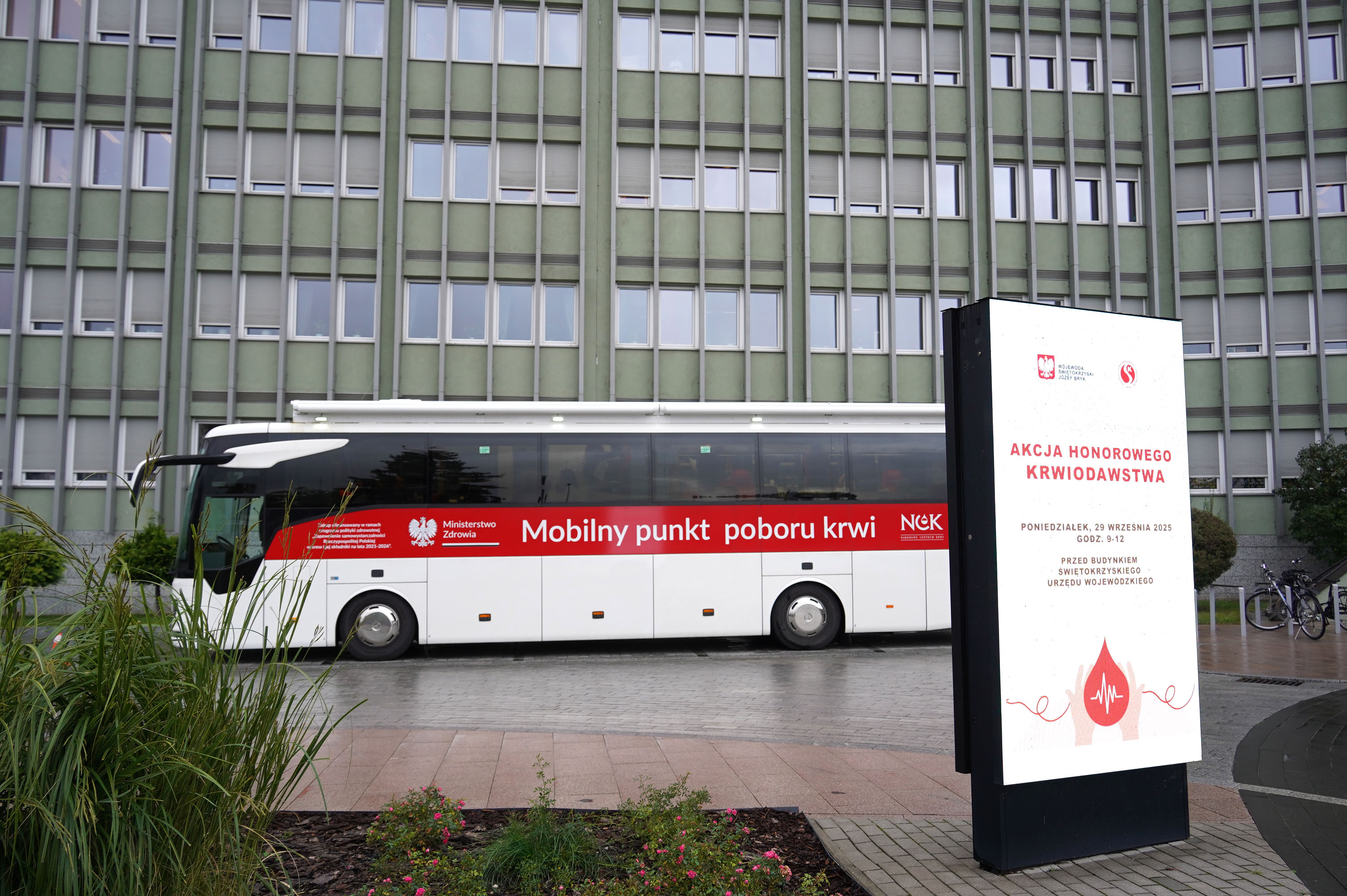Przed Świętokrzyskim Urzędem Wojewódzkim zorganizowano akcję honorowego oddawania krwi dla pacjentów szpitali. To odpowiedź wojewody Józefa Bryka na apel Regionalnego Centrum Krwiodawstwa i Krwiolecznictwa w Kielcach.
