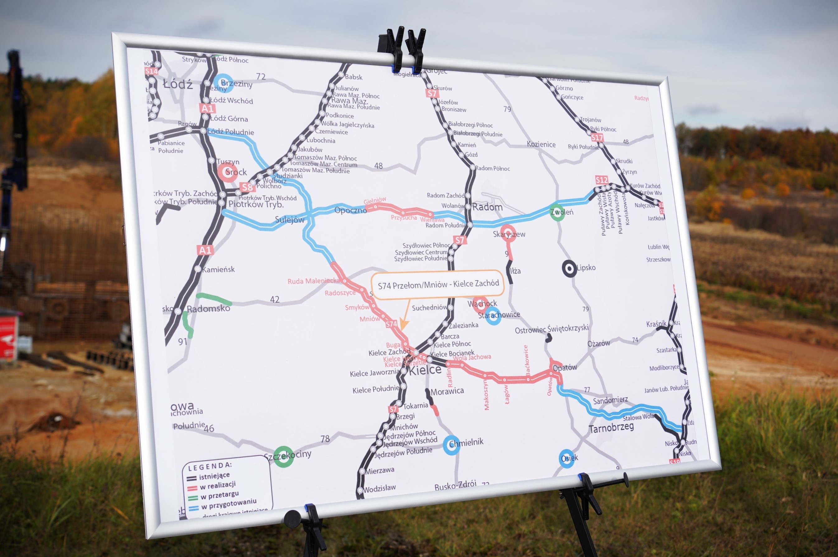 Budowany odcinek drogi ekspresowej S74 pomiędzy Mniowem a węzłem Kielce-Zachód ma długość około 16 kilometrów. Koszt całej inwestycji to prawi 630 mln złotych. Zakończenie inwestycji planowane jest na 2026 rok.