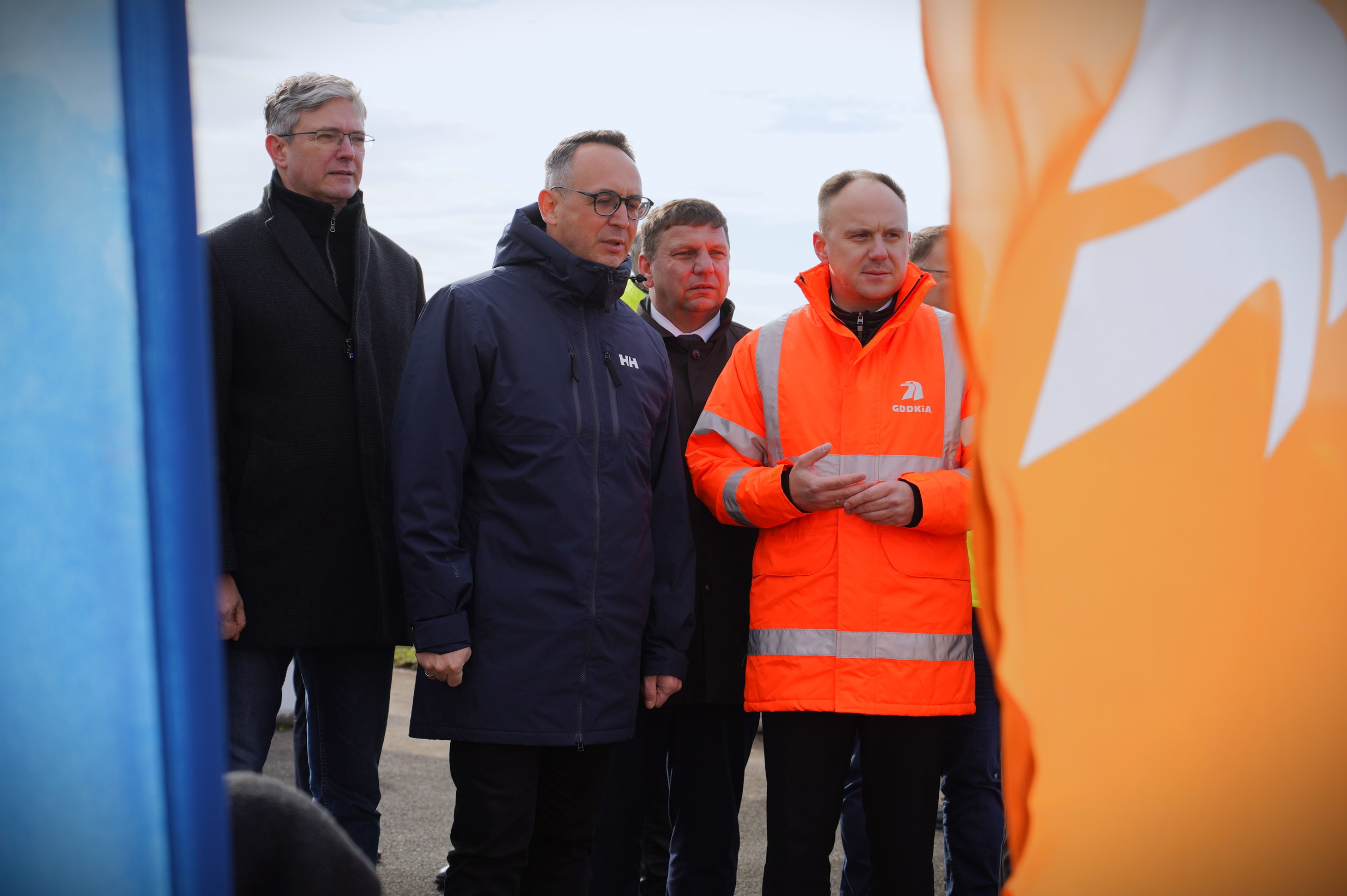 Podczas wizyty na placu budowy minister zapoznał się z postępem prac oraz spotkał się z przedstawicielami wykonawcy i mediami. W wydarzeniu uczestniczył również wicewojewoda świętokrzyski Michał Skotnicki.