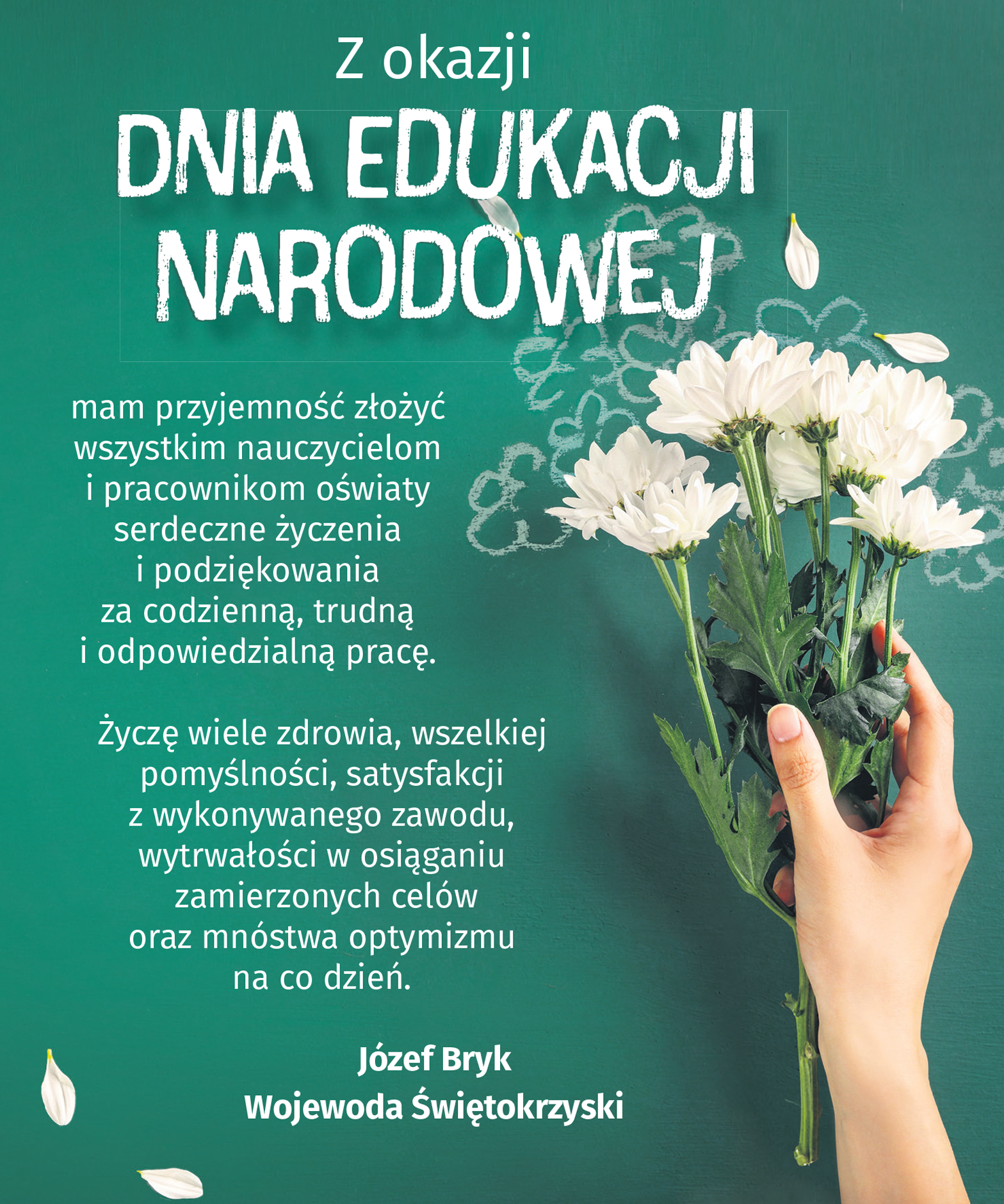 Z okazji Dnia Edukacji Narodowej mam przyjemność złożyć wszystkim nauczycielom i pracownikom oświaty serdeczne życzenia i podziękowania za codzienną, trudną i odpowiedzialną pracę.