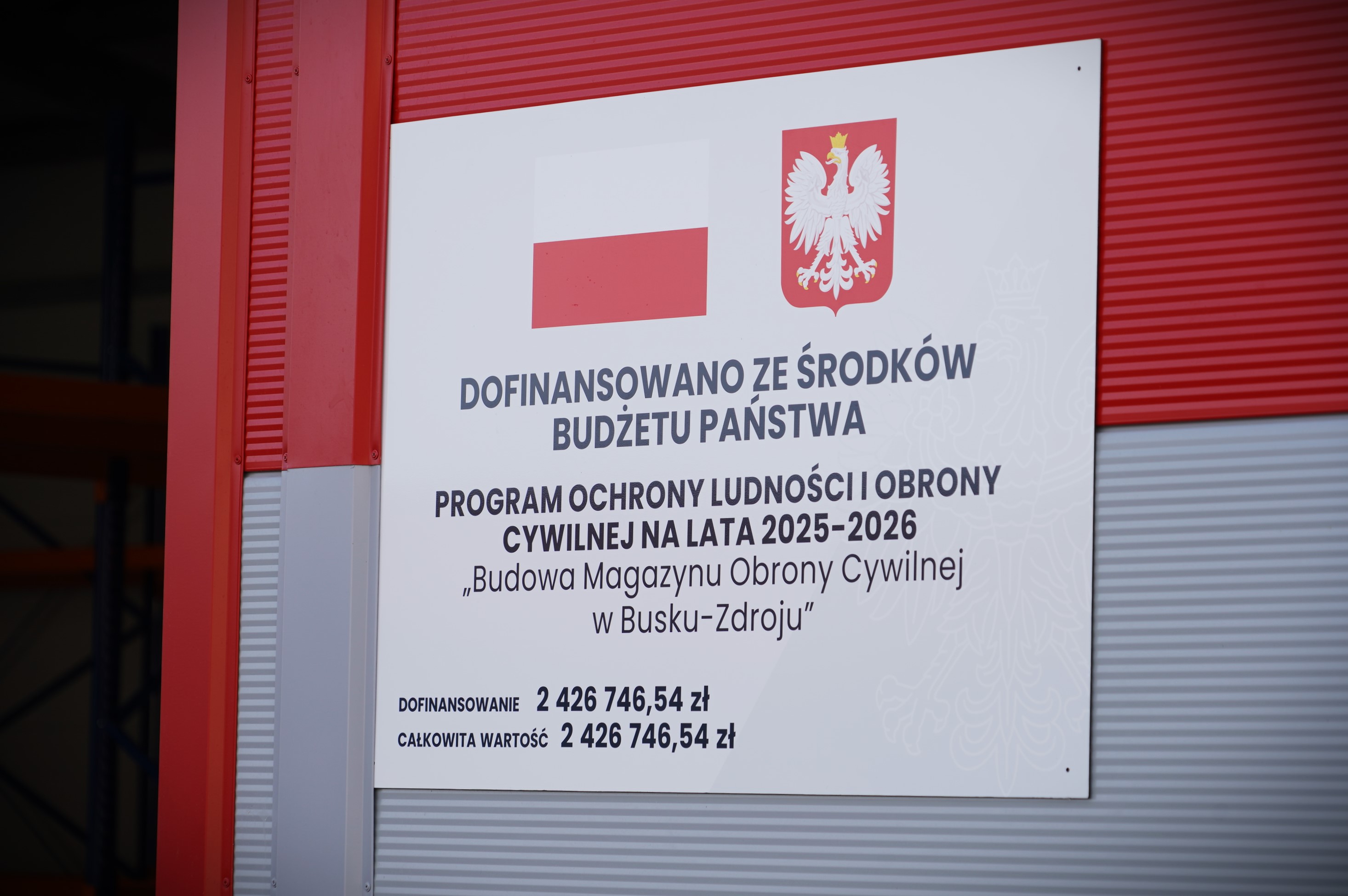 Nowoczesny magazyn obrony cywilnej powstał w Busku-Zdroju. To jedna z najważniejszych inwestycji w regionie służących bezpieczeństwu mieszkańców, która została dofinansowana w ubiegłym roku z rządowego Programu Ochrony Ludności i Obrony Cywilnej.