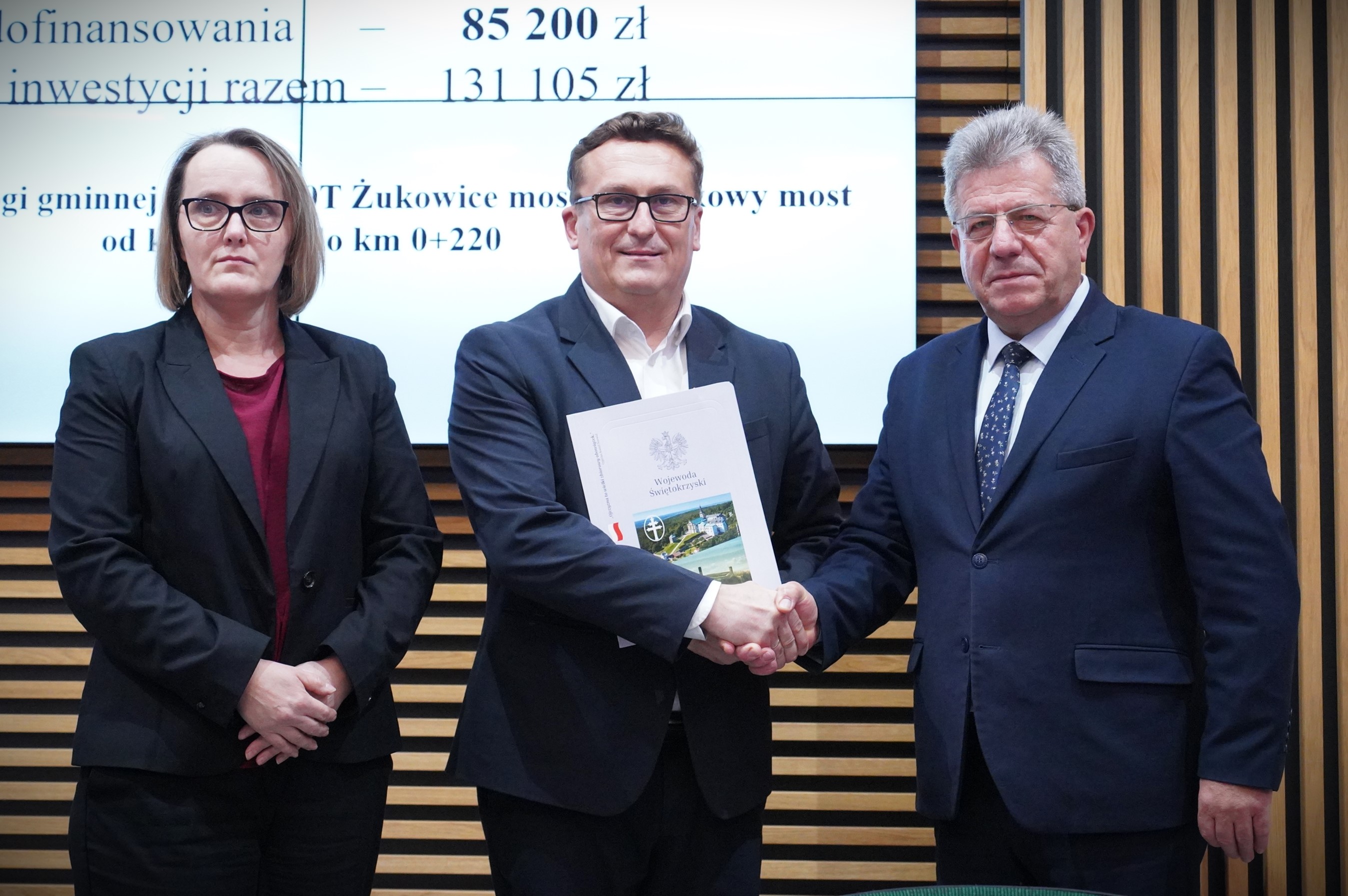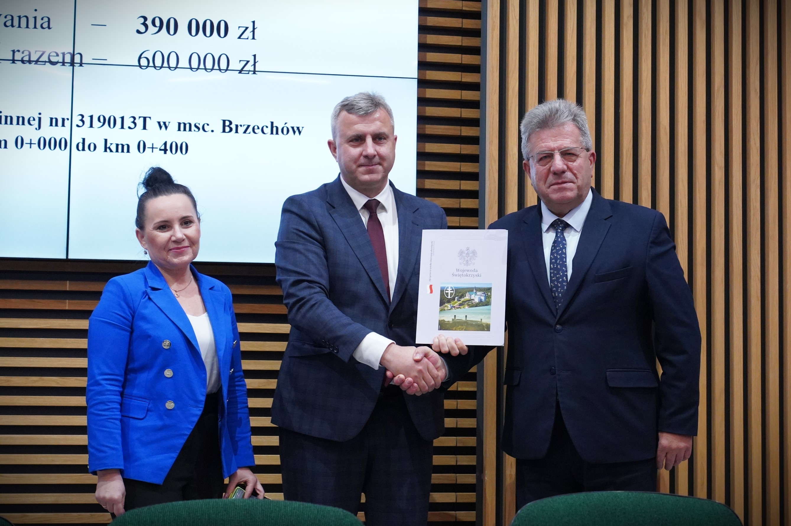 Wojewoda Józef Bryk podpisał z przedstawicielami świętokrzyskich samorządów kolejne umowy na usuwanie skutków klęsk żywiołowych. Rządowe dofinansowanie w wysokości ponad 19 mln 600 tys. zł pozwoli na remont ponad 30 kilometrów dróg uszkodzonych po ulewnych opadach deszczu.