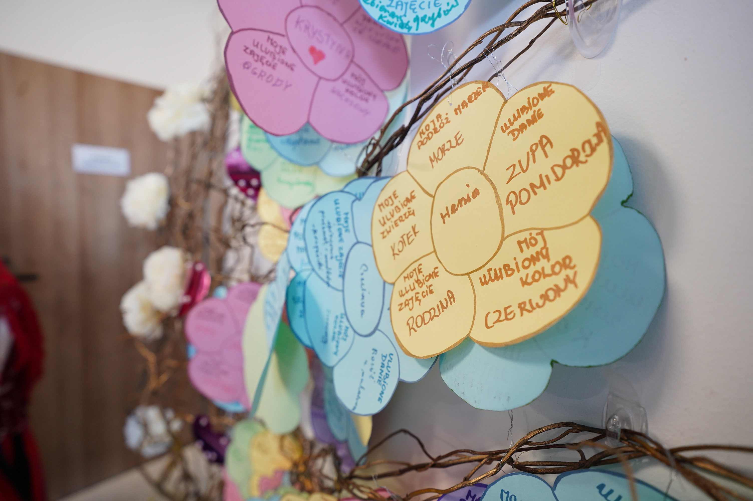 W budynku są m.in. pomieszczenia przeznaczone do terapii zajęciowej, aktywności ruchowej, kuchnia, kącik klubowy z prasą i biblioteczką.