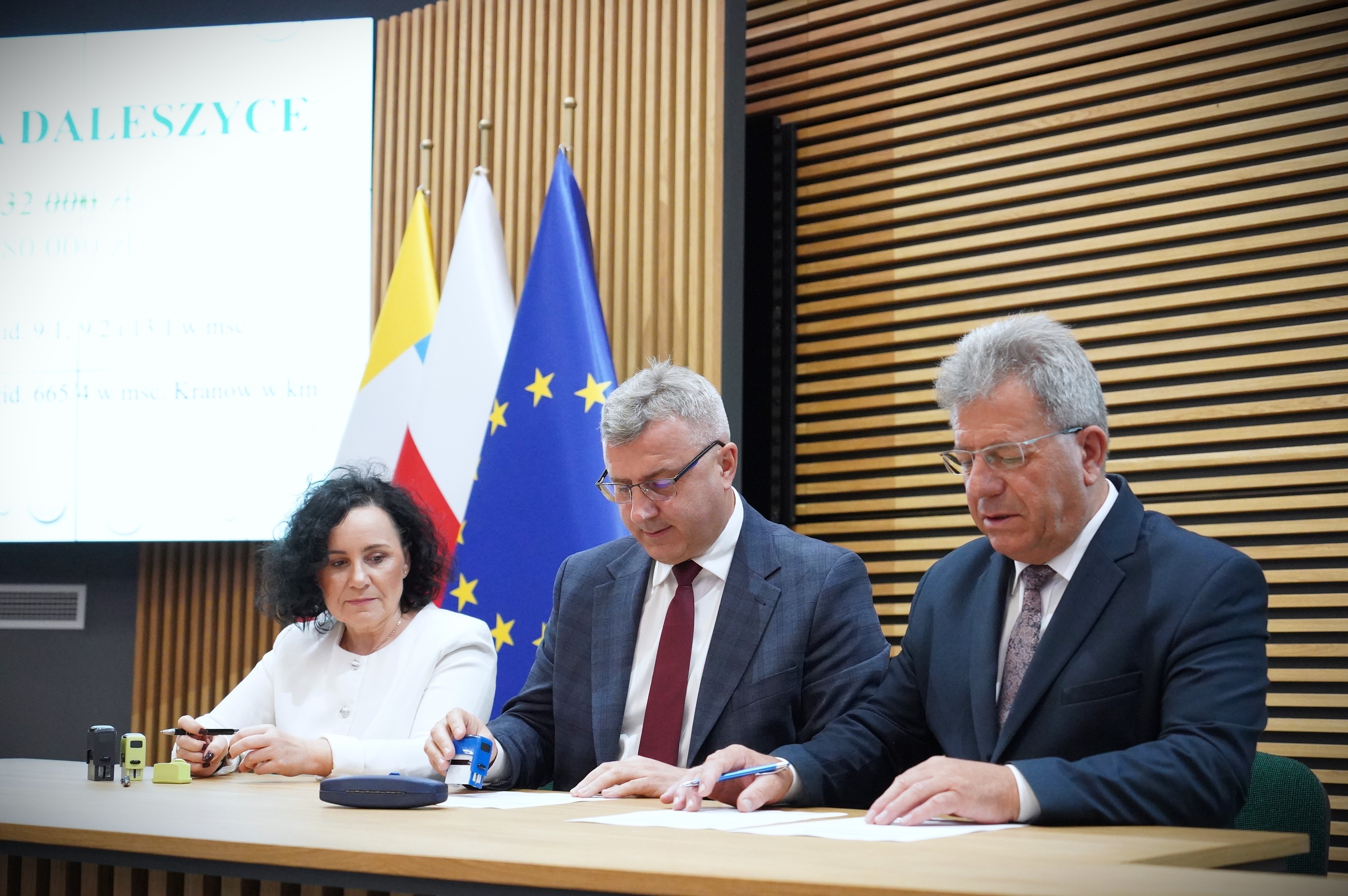 Wojewoda Józef Bryk podpisał ze świętokrzyskimi samorządowcami kolejne umowy na usuwanie skutków klęsk żywiołowych. Dzięki rządowemu dofinansowaniu w wysokości ponad 22 mln 700 tys. zł zostanie wyremontowanych 38 kilometrów dróg uszkodzonych w wyniku ulewnych opadów deszczu.