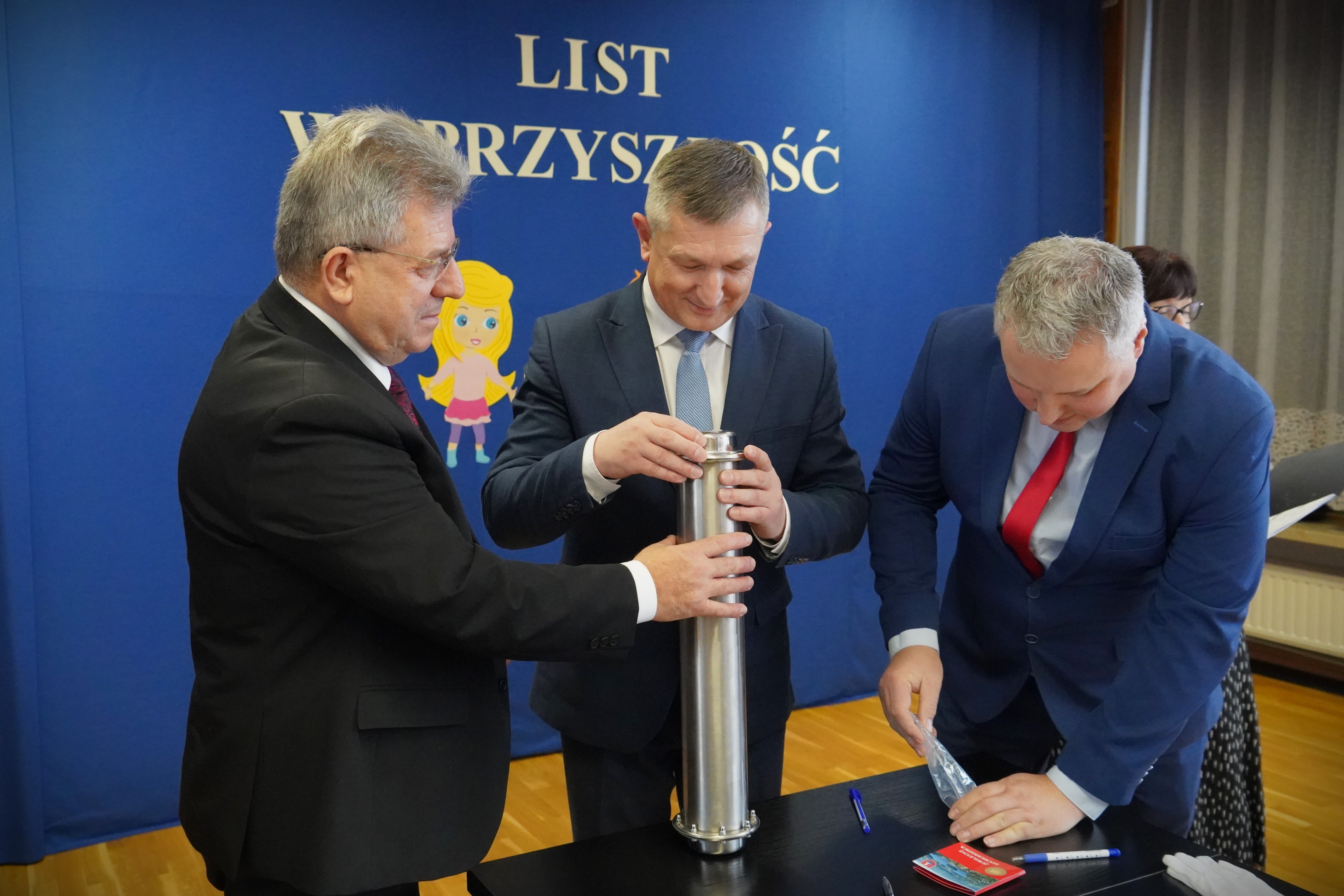 Wojewoda Józef Bryk odwiedził teren inwestycji, gdzie odbyła się uroczystość wmurowania symbolicznej „kapsuły czasu”.
