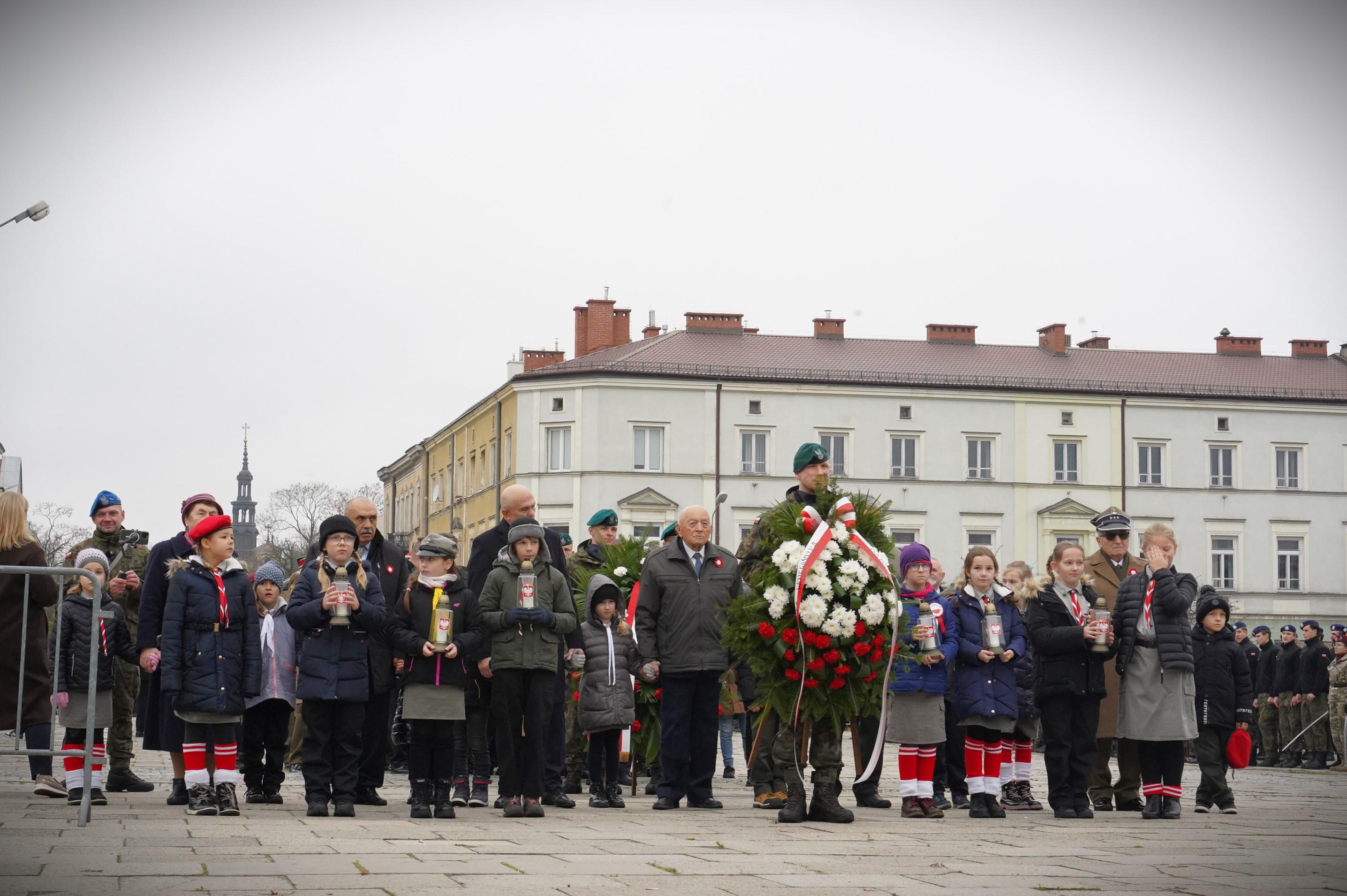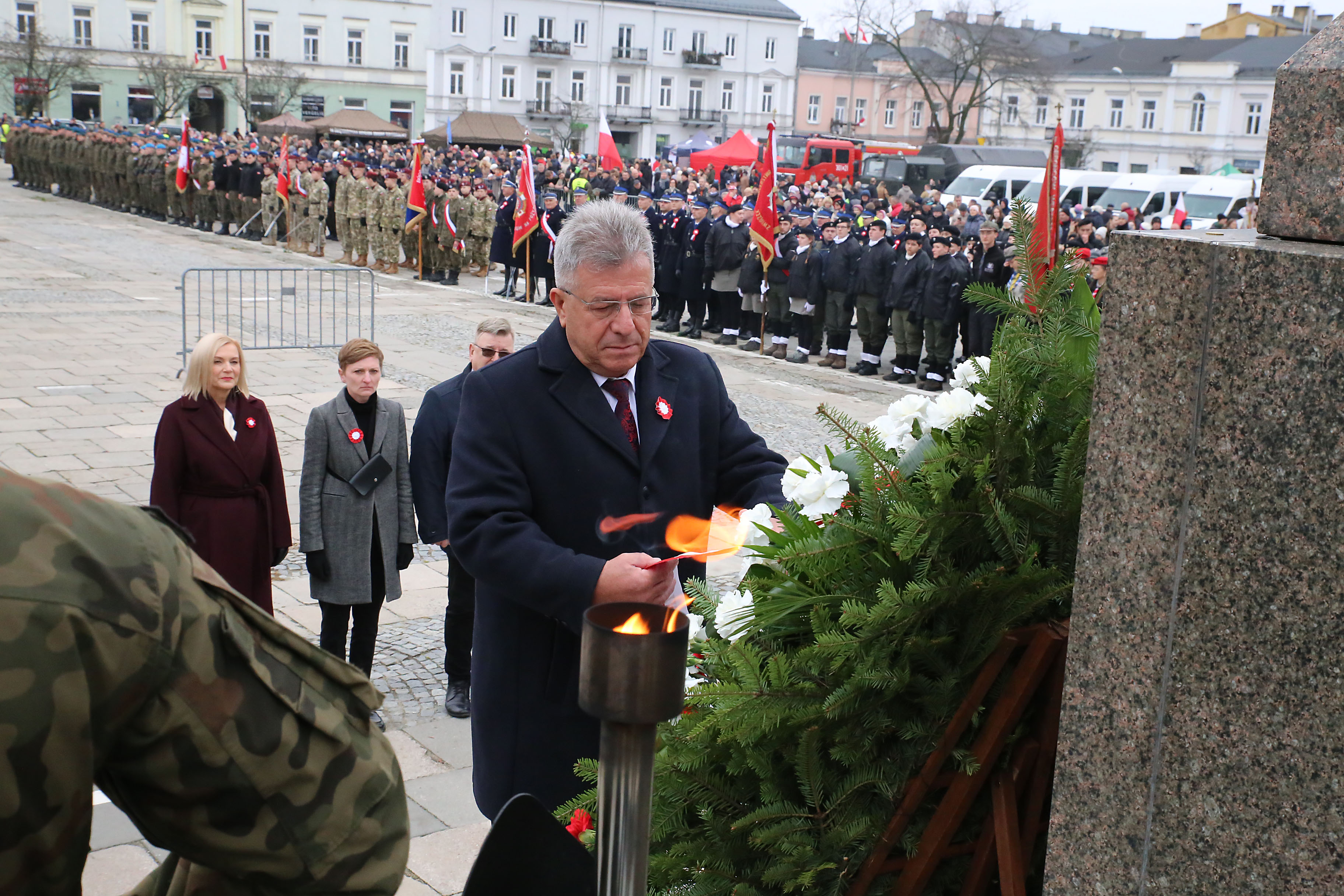 Rocznicę odzyskania niepodległości uczczono podczas uroczystości na Placu Wolności. Przed pomnikiem Józefa Piłsudskiego złożono kwiaty i zapalono znicze.