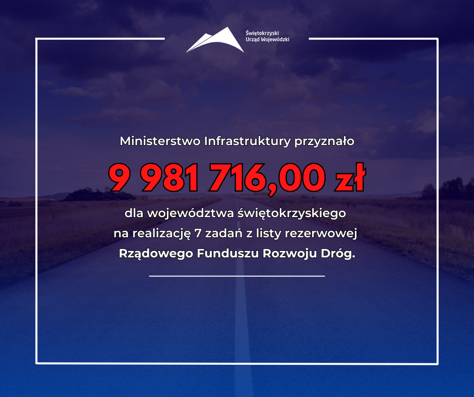 Kolejne dobre wiadomości dla województwa świętokrzyskiego. Ministerstwo Infrastruktury przyznało dofinansowanie na infrastrukturę drogową. Blisko 10 mln złotych trafi do siedmiu gmin w naszym regionie.