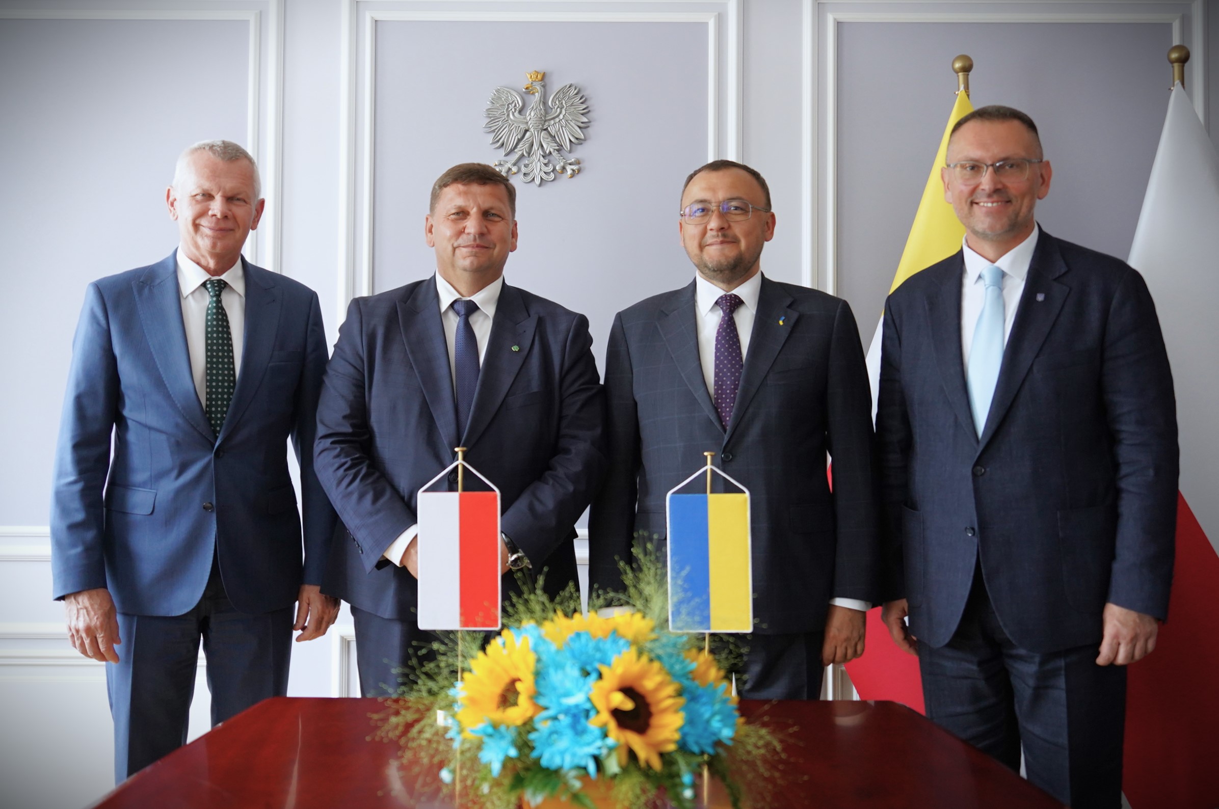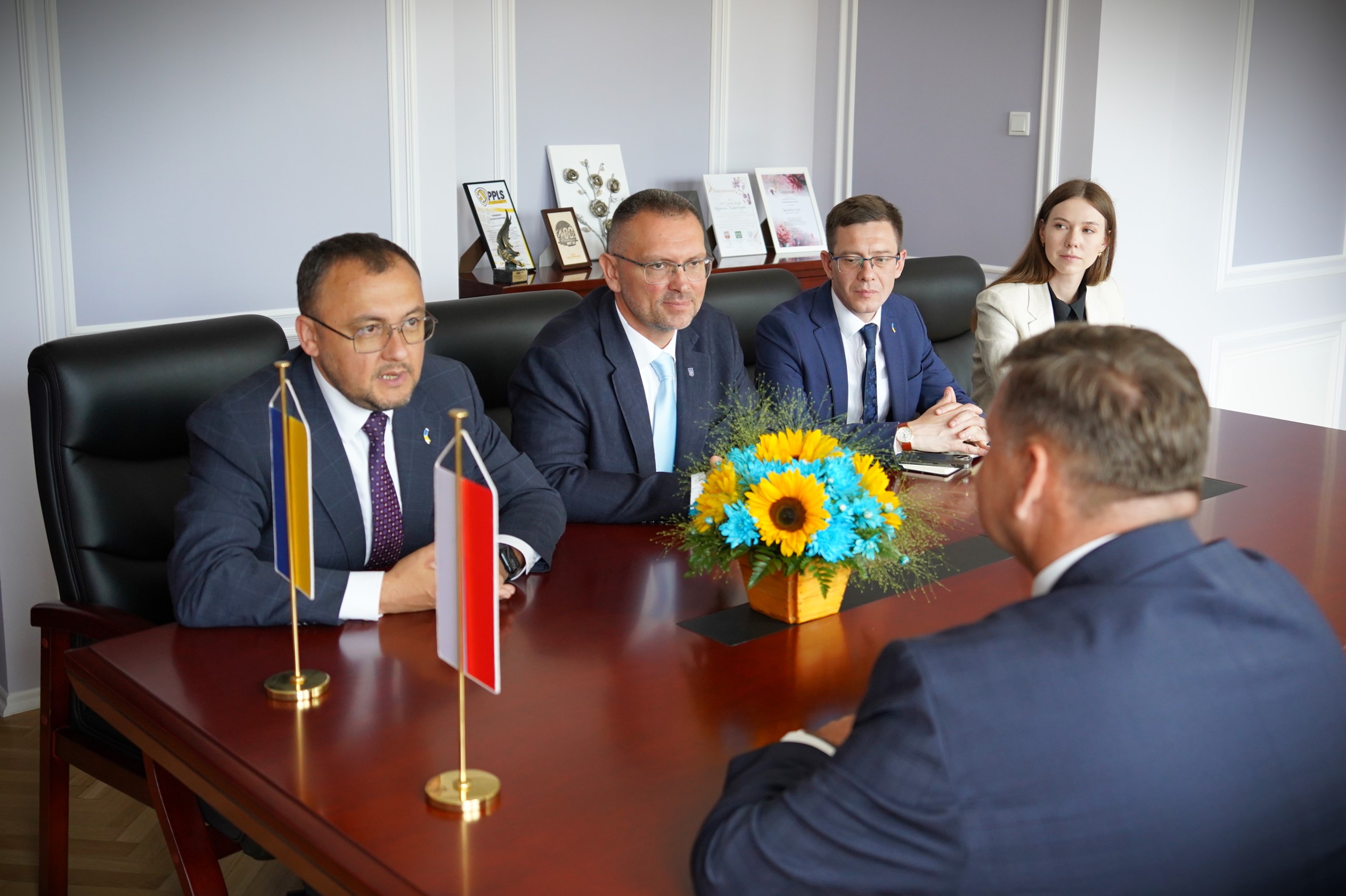 Wicewojewoda Michał Skotnicki spotkał się z ambasadorem Ukrainy w Polsce Wasylem Bodnarem oraz konsulem generalnym Ukrainy w Krakowie Wiaczesławem Wojnarowskim, którym towarzyszyli wicekonsul Valentyna Kuzmin i pierwszy sekretarz ambasady Tymur Liakh.