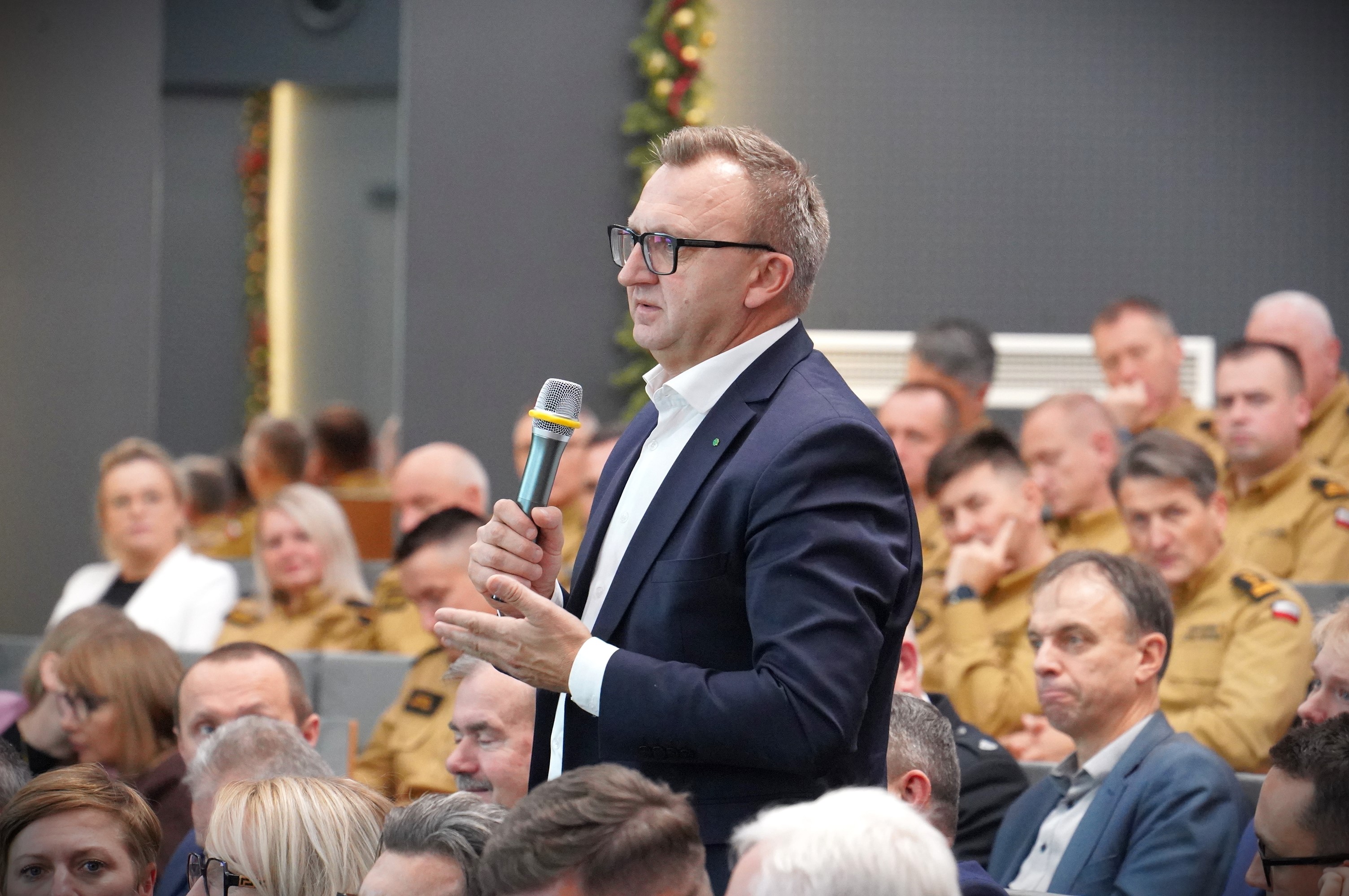 Wiceminister podkreślił znaczenie współpracy samorządów z Państwową Strażą Pożarną w wykorzystywaniu systemu alarmowania i ostrzegania przed zagrożeniami. W przypadku ogłoszenia alarmu istotne jest wskazanie mieszkańcom miejsc doraźnego schronienia. – Samorządy oczekują merytorycznego wsparcia ze strony komend straży pożarnej – mówił.
