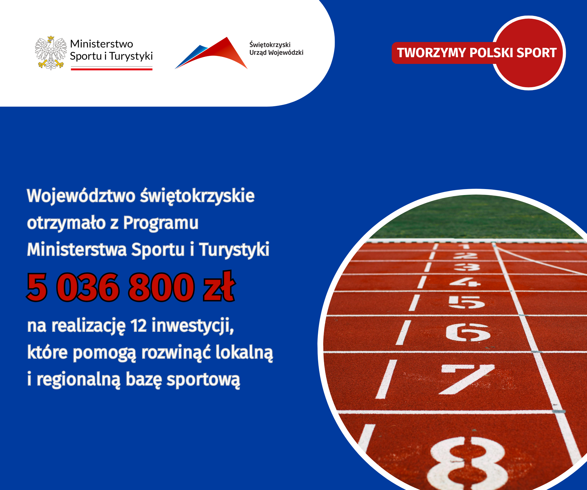 5 mln zł trafi do województwa świętokrzyskiego na rozwój infrastruktury sportowej. Dzięki programowi Ministerstwa Sportu i Turystyki w naszym regionie zrealizowanych zostanie 12 zadań: