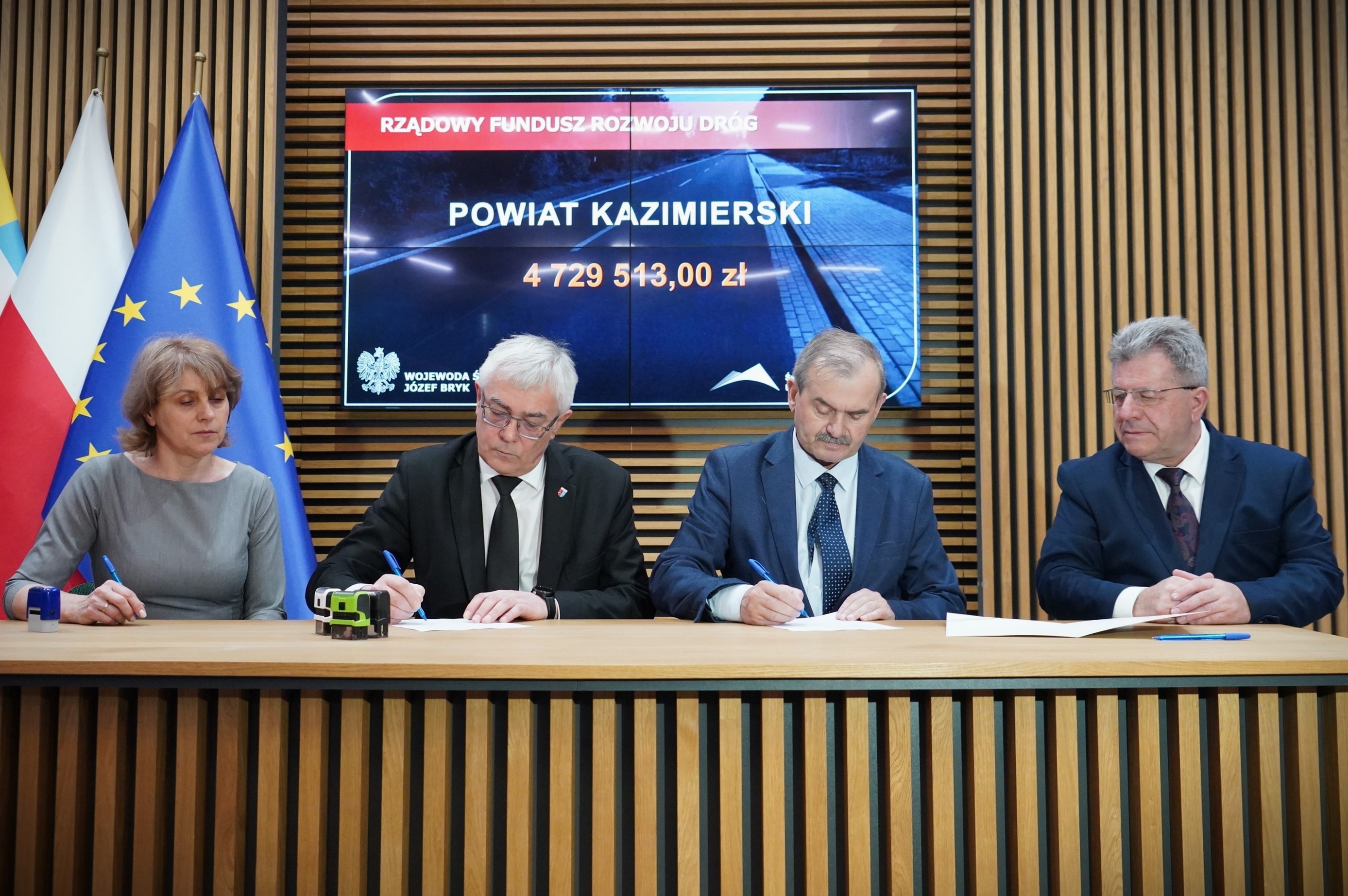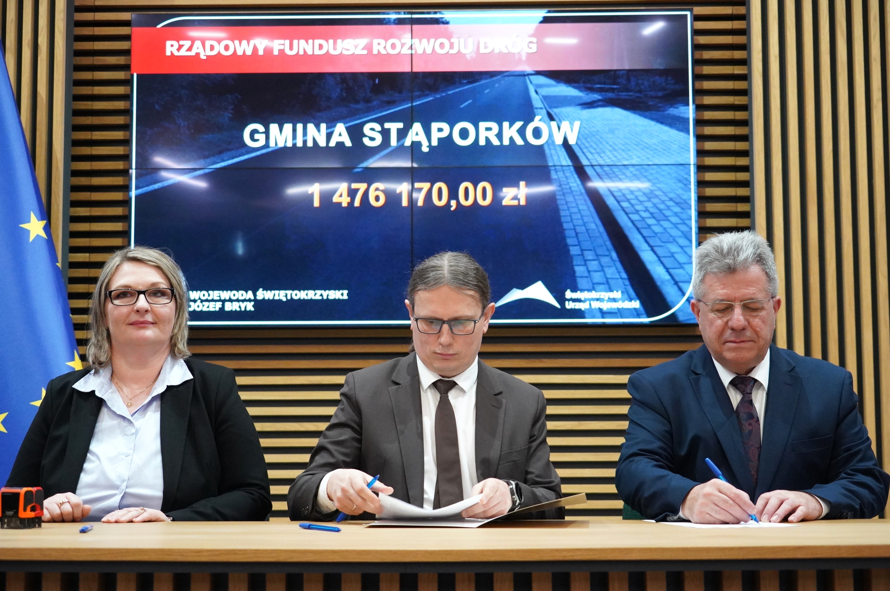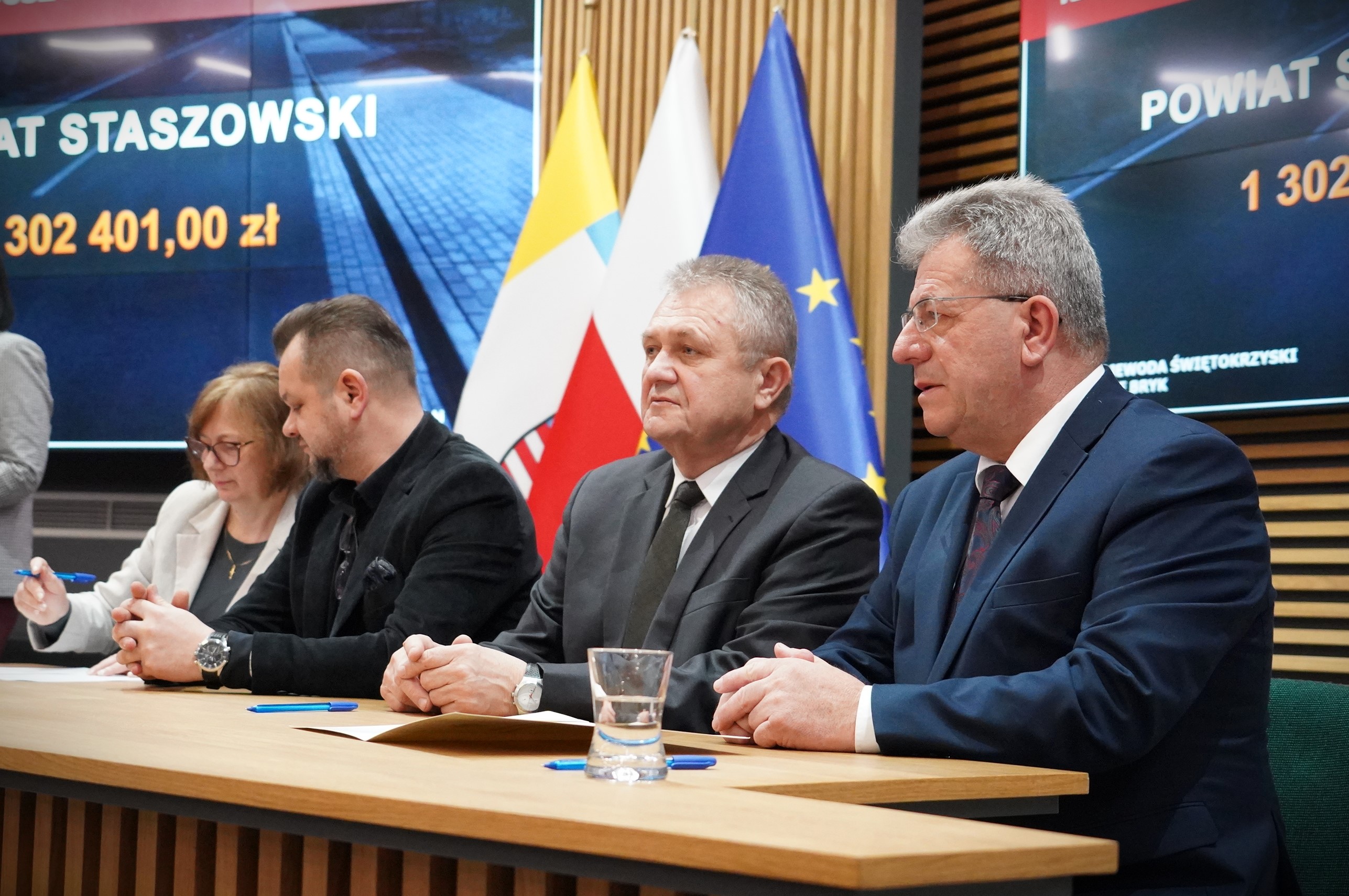 Większe bezpieczeństwo i ułatwienia dla mieszkańców. Wojewoda Józef Bryk podpisał ze świętokrzyskimi samorządowcami umowy w ramach Rządowego Funduszu Rozwoju Dróg. W tym roku na jednoroczne oraz wieloletnie inwestycje drogowe trafi do regionu 149 mln złotych.