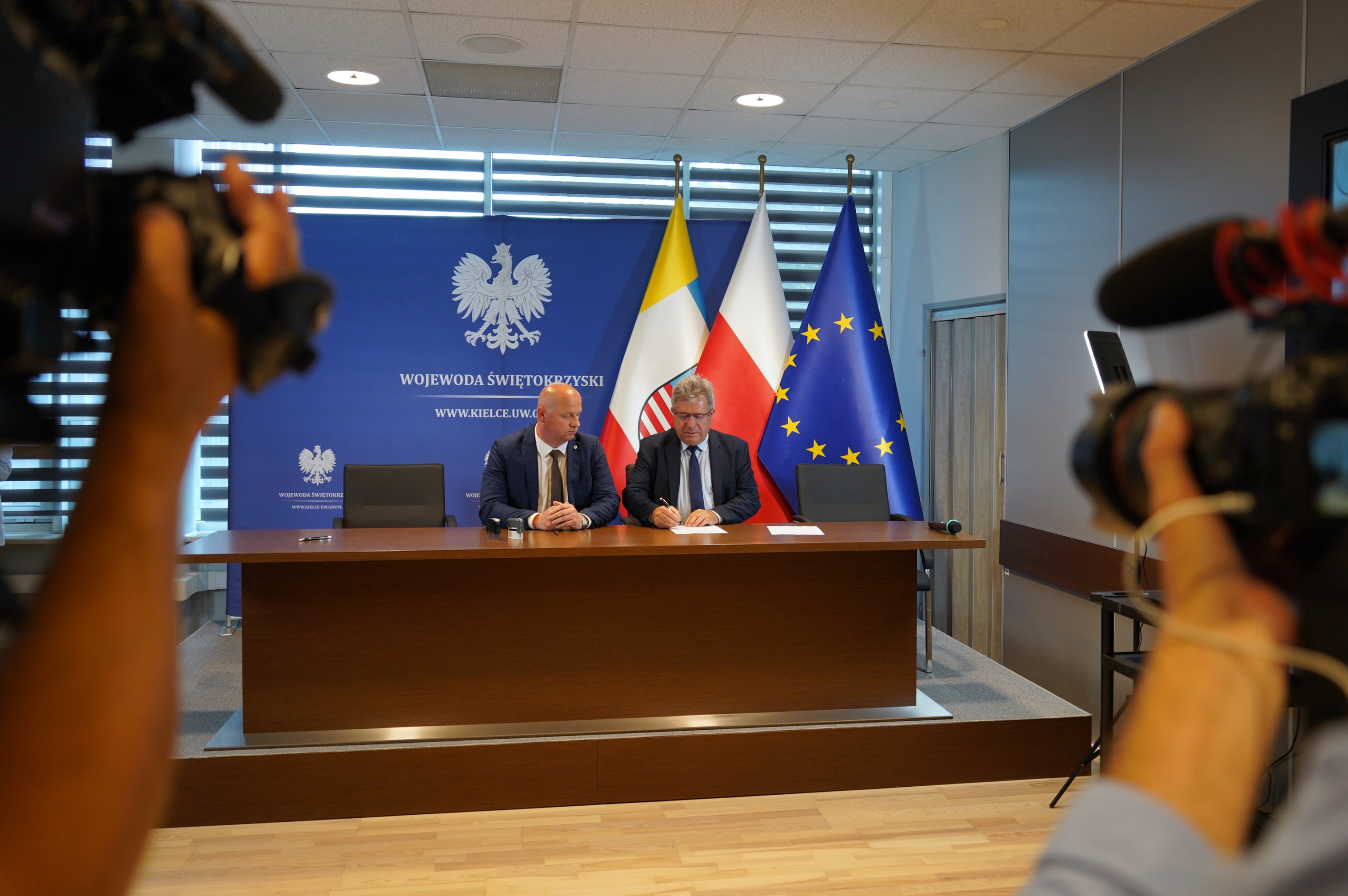 1 693 475 zł trafi do świętokrzyskich samorządów na realizację zadań związanych z usuwaniem skutków niekorzystnych zjawisk atmosferycznych. Z pieniędzy skorzysta 8 samorządów, przez teren których w maju, czerwcu i lipcu ubiegłego roku przeszedł nawalny deszcz. W poniedziałek, 14 lipca wojewoda Józef Bryk podpisał umowy z samorządowcami.