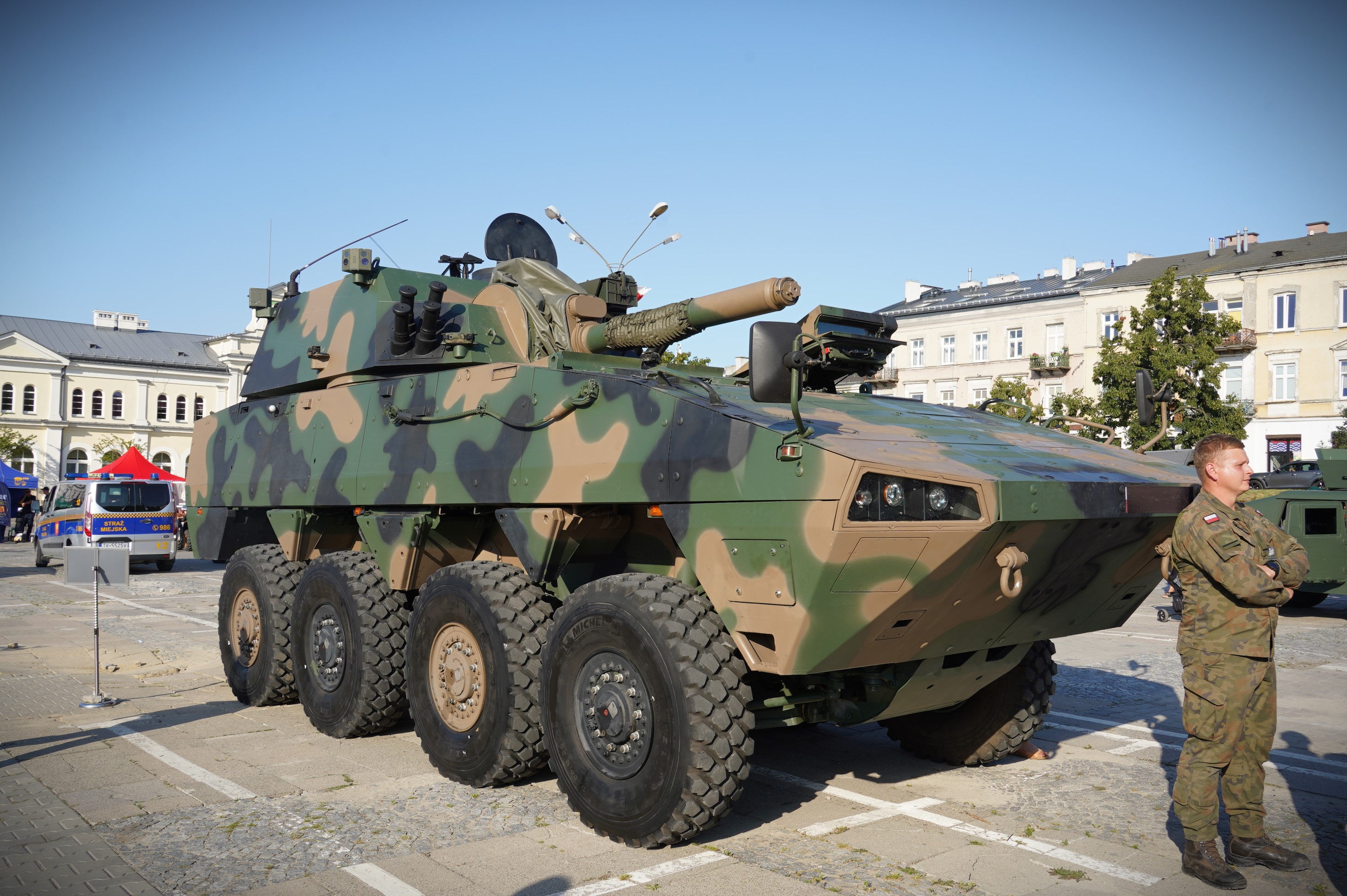 Podczas obchodów na Placu Wolności można było również oglądać prezentację sprzętu wojskowego, która cieszyła się dużym zainteresowaniem mieszkańców. Uroczystości zakończyło złożenie wieńców przed pomnikiem Marszałka Józefa Piłsudskiego oraz defilada pododdziałów.