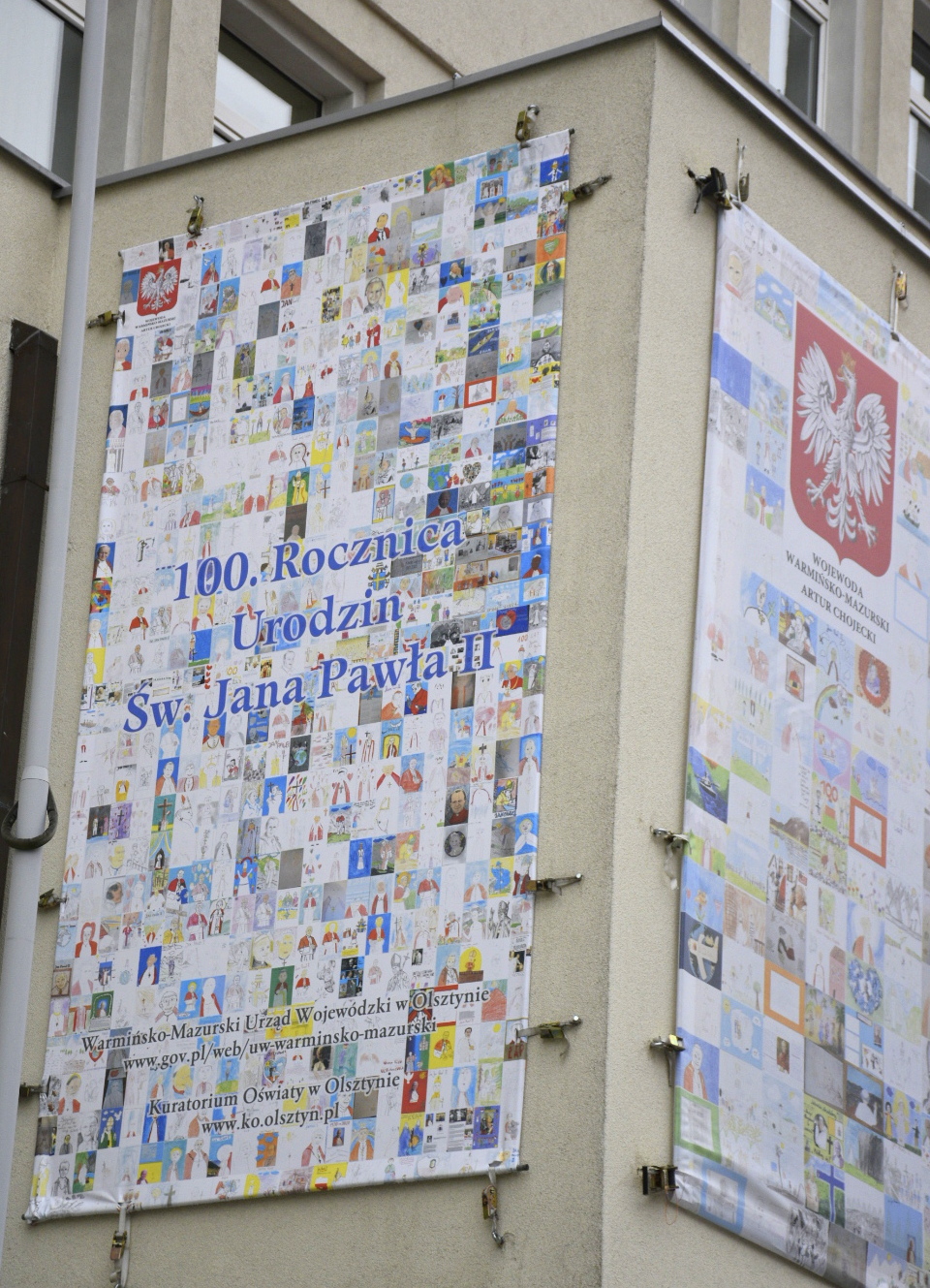 W ramach obchodów 100. rocznicy urodzin św. Jana Pawła II, Urząd Wojewódzki wspólnie z Kuratorium Oświaty przygotował baner złożony z rysunków przedstawiających postać Papieża-Polaka.