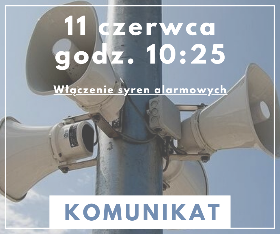 W związku z praktycznym obronnym ćwiczeniem specjalistycznym pk. „NAPAD 2021” organizowanym przez Okręgowy Inspektorat Służby Więziennej w Olsztynie, w piątek 11 czerwca 2021 roku o godzinie 10:25 zostaną włączone syreny alarmowe zlokalizowane w: