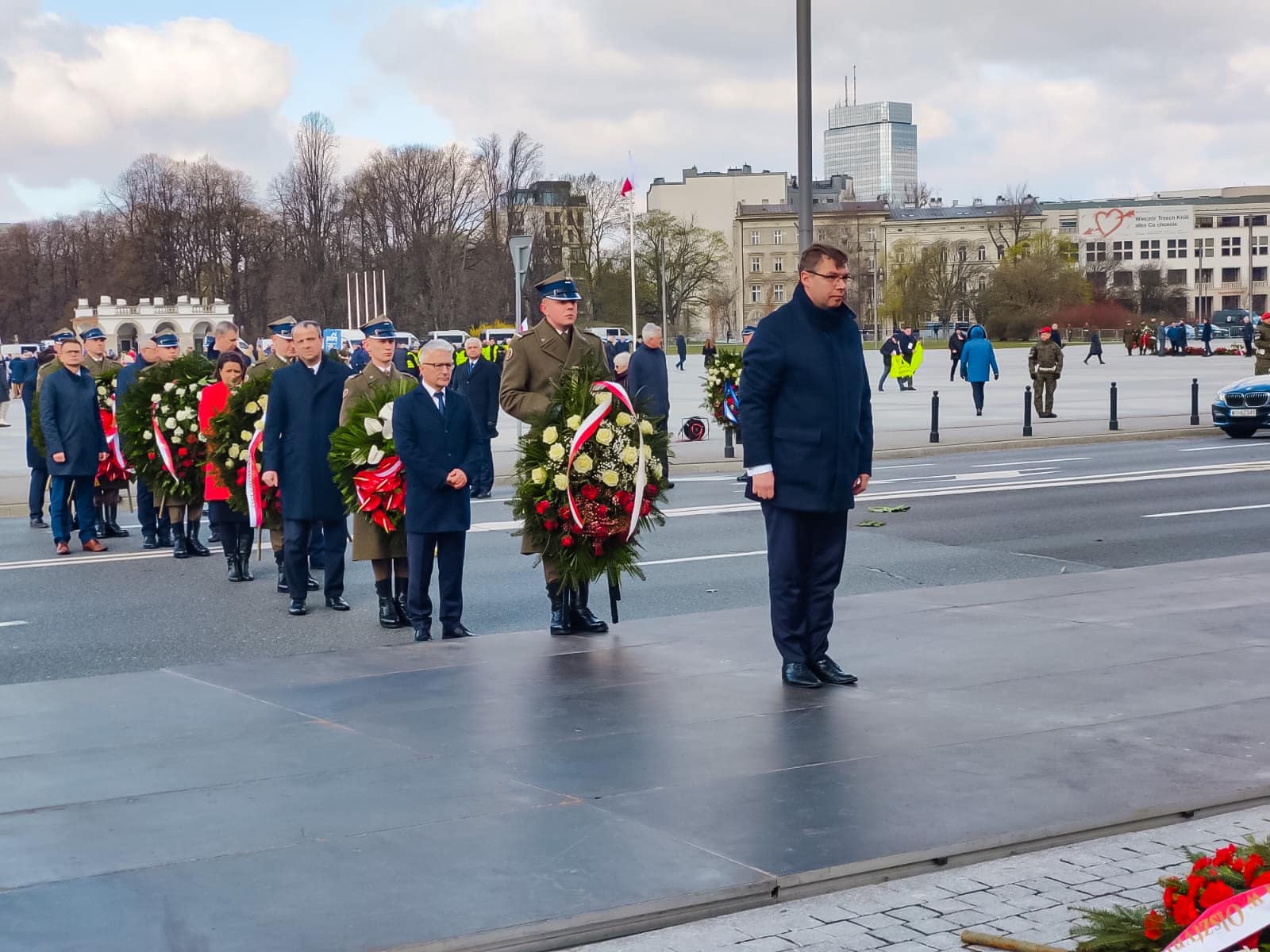 "96 osób w drodze do Katynia, po to aby uczcić pamięć zamordowanych przez Rosję polskich oficerów oddało swoje życie. Wśród nich był Prezydent RP Lech Kaczyński, jego małżonka, pierwsza dama Maria Kaczyńska, wicemarszałkowie Sejmu, Senatu, parlamentarzyści, dowódcy sił zbrojnych i inne wspaniałe osoby. 96 wspaniałych Polaków. Oddajemy im dziś cześć, pamiętając o jedności i solidarności, która cechowała tamte dni, dzień tragedii i kolejne następne dni. Tej solidarności i jedności zwykłych Polaków dzisiaj nam potrzeba w obliczu ohydnej zbrodni, którą po raz kolejny popełniają Rosjanie na ludziach wolnego świata, na ludziach, którzy chcą żyć po swojemu" – powiedział wicewojewoda.