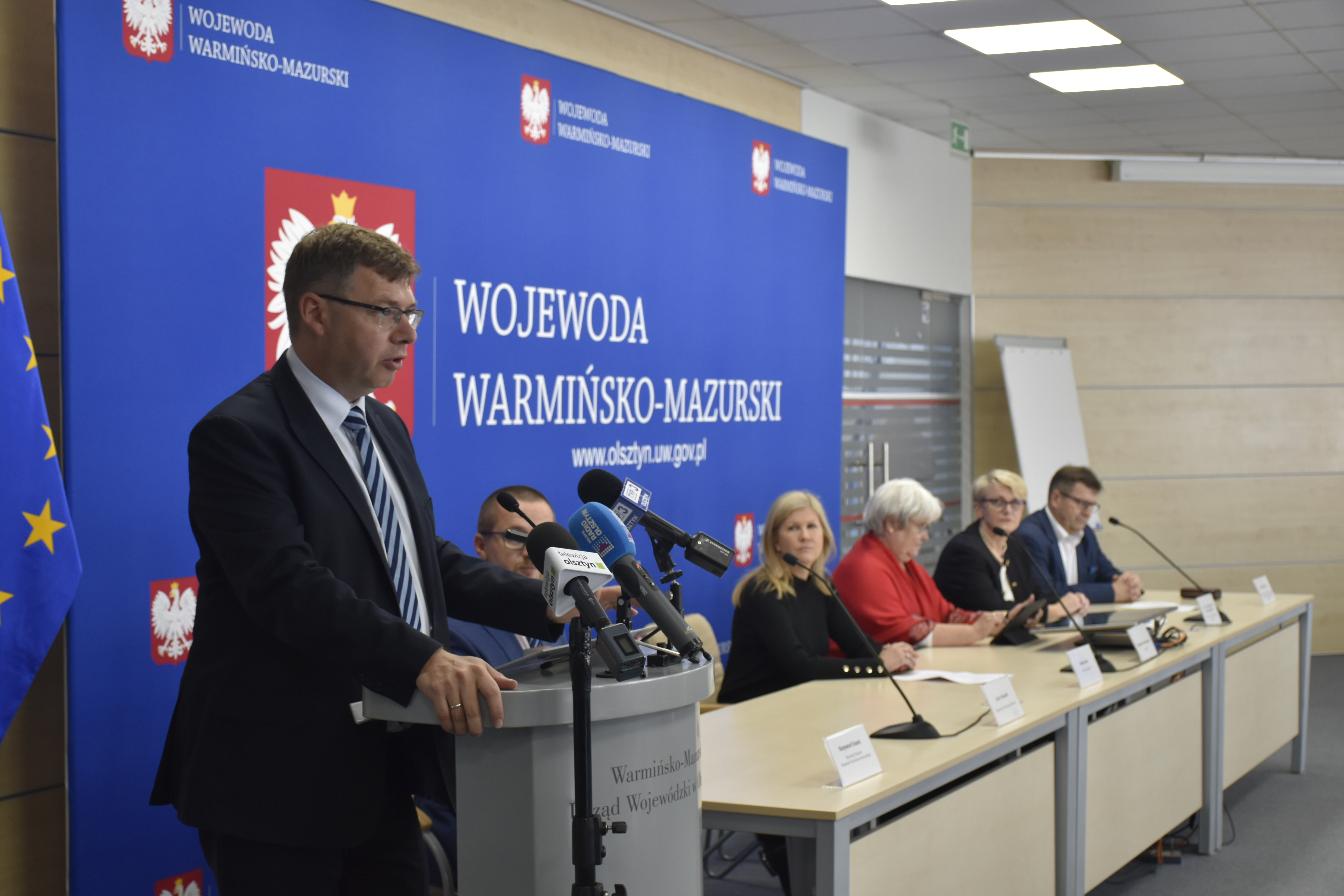 Dziś w Urzędzie Wojewódzkim odbyła się konferencja prasowa poświęcona finansowaniu przez Fundusz Medyczny rozbudowy i przebudowy Wojewódzkiego Specjalistycznego Szpitala Dziecięcego w Olsztynie. W wydarzeniu udział wzięli: Wojewoda Warmiński-Mazurski Artur Chojecki, Poseł Iwona Arent, Senator Bogusława Orzechowska, Dyrektor Szpitala Dziecięcego w Olsztynie dr n. med. Krystyna Piskorz-Ogórek i Dyrektor Warmińsko-Mazurskiego Oddziału Wojewódzkiego NFZ w Olsztynie Andrzej Zakrzewski.