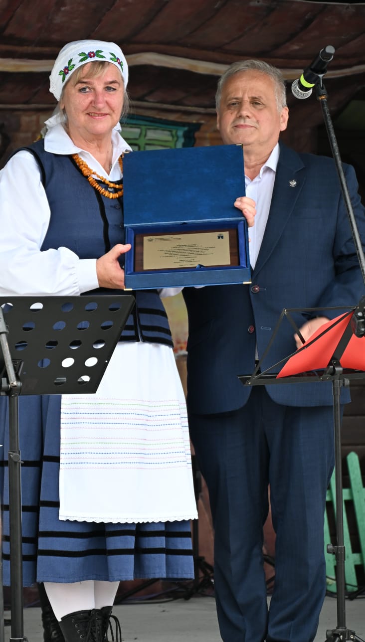 Szczególne słowa uznania skierowane zostały do Pani Teresy Kacperskiej – założycielki i liderki zespołu, której poświęcenie, wizja i zaangażowanie były iskrą zapalną tego wyjątkowego przedsięwzięcia. Wicewojewoda wręczył Pani Teresie kwiaty jako symbol podziękowania za jej wieloletnią pracę na rzecz zachowania dziedzictwa kulturowego regionu.
