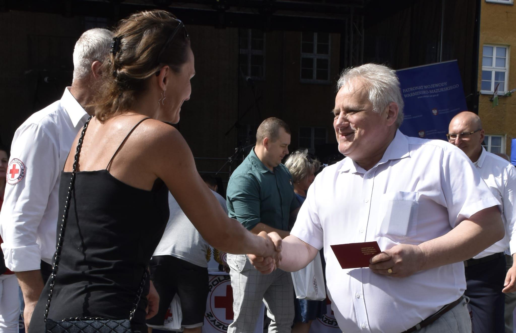 Po zakończeniu zawodów, uczestnicy przenieśli się na plac Juranda w Szczytnie, gdzie odbyła się oficjalna uroczystość. Podczas ceremonii wręczono odznaczenia, wyróżnienia oraz podziękowania najbardziej zasłużonym członkom Klubu. Sławomir Staszak, prezes KHD w Szczytnie, podkreślił rolę krwiodawców w ratowaniu życia oraz znaczenie krwiodawstwa dla społeczności lokalnej. Posłanka Urszula Pasławska, oraz wicewojewoda Zbigniew Szczypiński w swoich wystąpieniach wyrazili wdzięczność dla wszystkich honorowych dawców krwi, podkreślając ich bezinteresowność i zaangażowanie oraz znaczenie w ratowaniu życia zgodnie z zasadą: „Twoja krew ratuje życie!”.