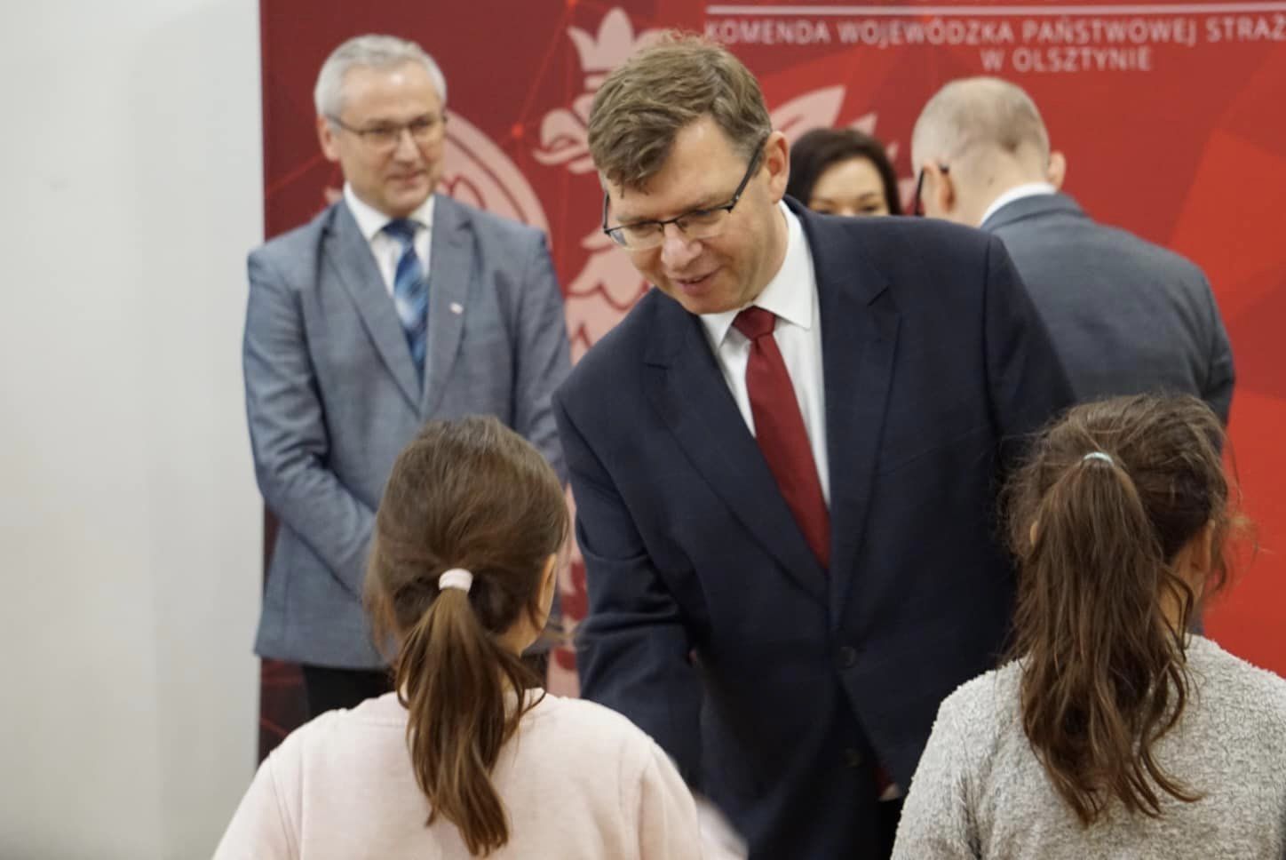 Symboliczne promesy dla jednostek OSP z powiatów: olsztyńskiego, ełckiego, giżyckiego, gołdapskiego, kętrzyńskiego, oleckiego, piskiego, węgorzewskiego i mrągowskiego przekazał Wojewoda Warmińsko-Mazurski Artur Chojecki wspólnie z Wiceministrem Błażejem Pobożym, Poseł Iwoną Arent, Posłem Jerzym Małeckim, Senator Małgorzatą Kopiczko oraz nadbryg. Tomaszem Komoszyńskim Komendantem Wojewódzkiej PSP w Olsztynie.