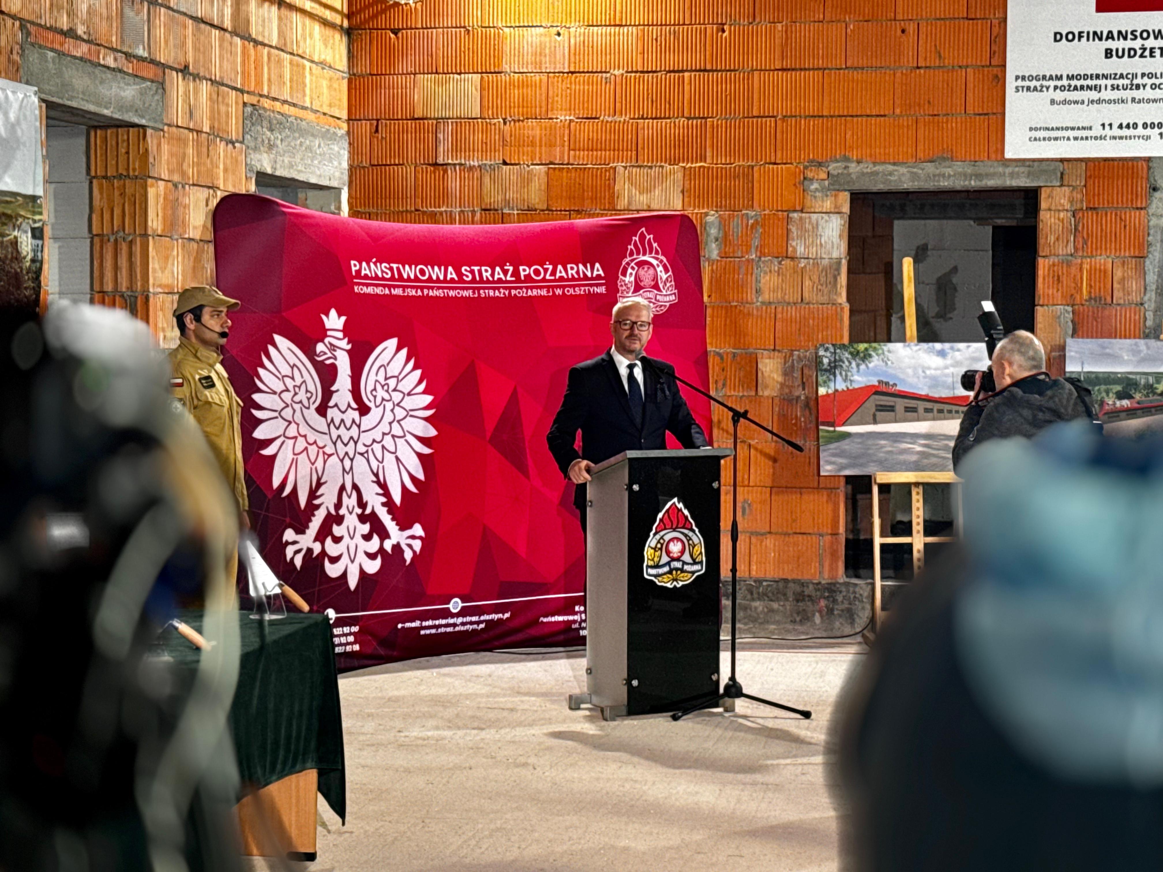 Dziś odbyła się uroczystość wmurowania aktu erekcyjnego pod budowę nowej Jednostki Ratowniczo-Gaśniczej nr 3 Państwowej Straży Pożarnej w Olsztynie, która powstaje przy ulicy Witosa w Olsztynie. W wydarzeniu wziął udział Wojewoda Warmińsko-Mazurski Radosław Król, a także wielu ważnych przedstawicieli władz i instytucji samorządowych oraz służb ratowniczych.