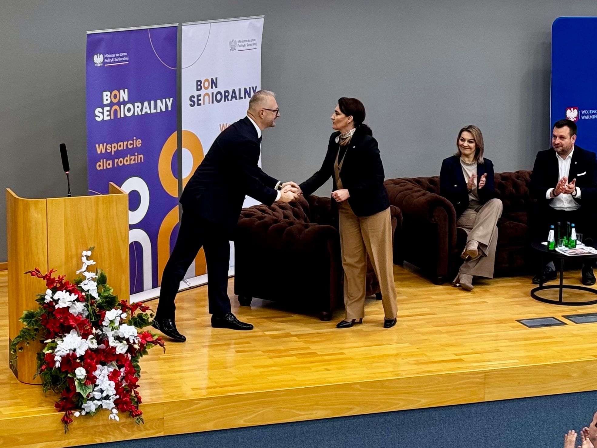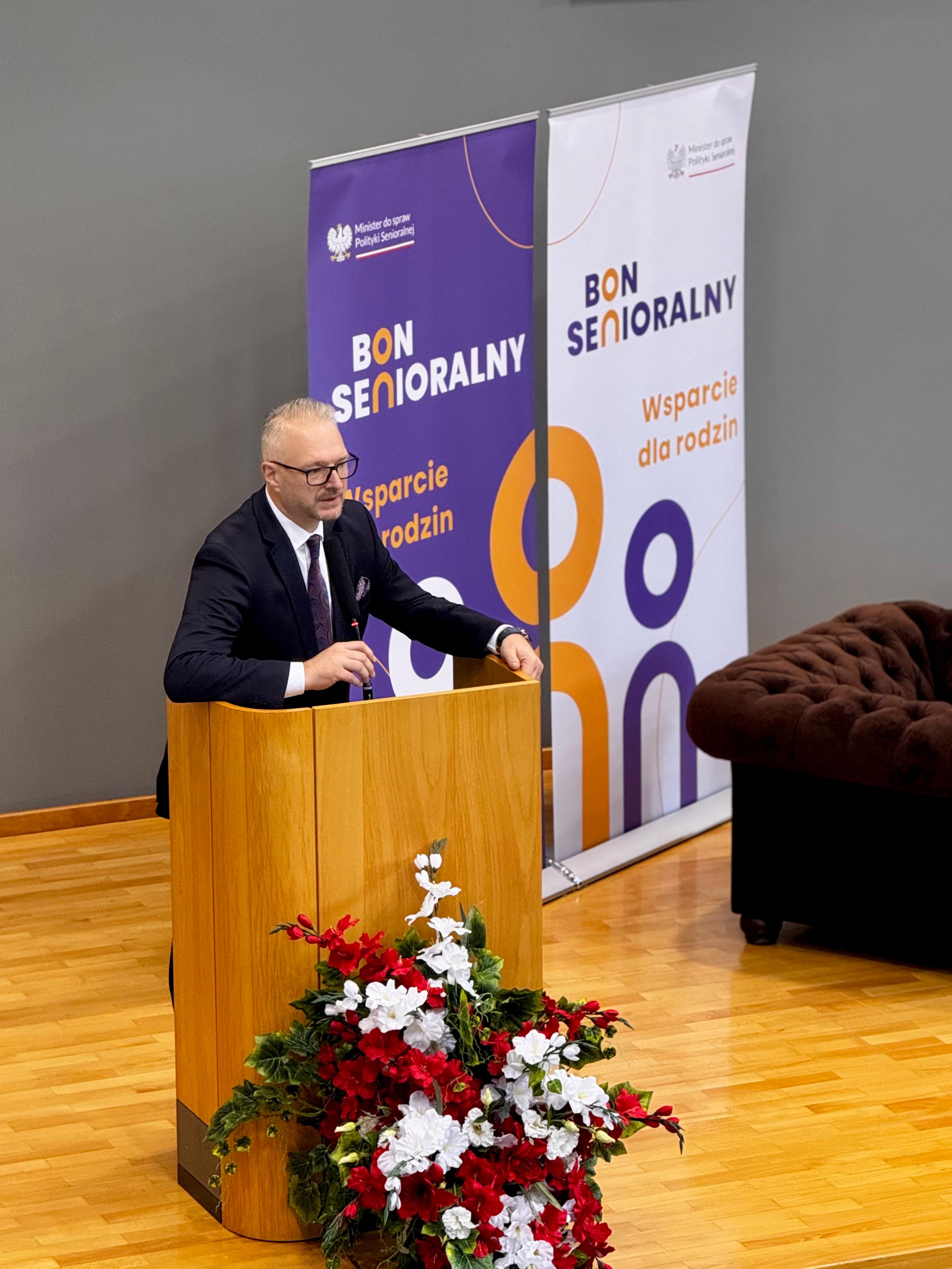 Minister ds. Polityki Senioralnej Marzena Okła-Drewnowicz odwiedziła w poniedziałek, 18 listopada, Warmińsko-Mazurski Urząd Wojewódzki w Olsztynie, aby przedstawić założenia nowego programu wsparcia dla osób starszych – bonu senioralnego. Miały tu miejsce konsultacje społeczne projektu ustawy o systemie usług wspierających rodzinę w opiece nad seniorem, który ma pomóc seniorom wymagającym opieki, jakiej nie mogą zapewnić im bliscy aktywni zawodowo.