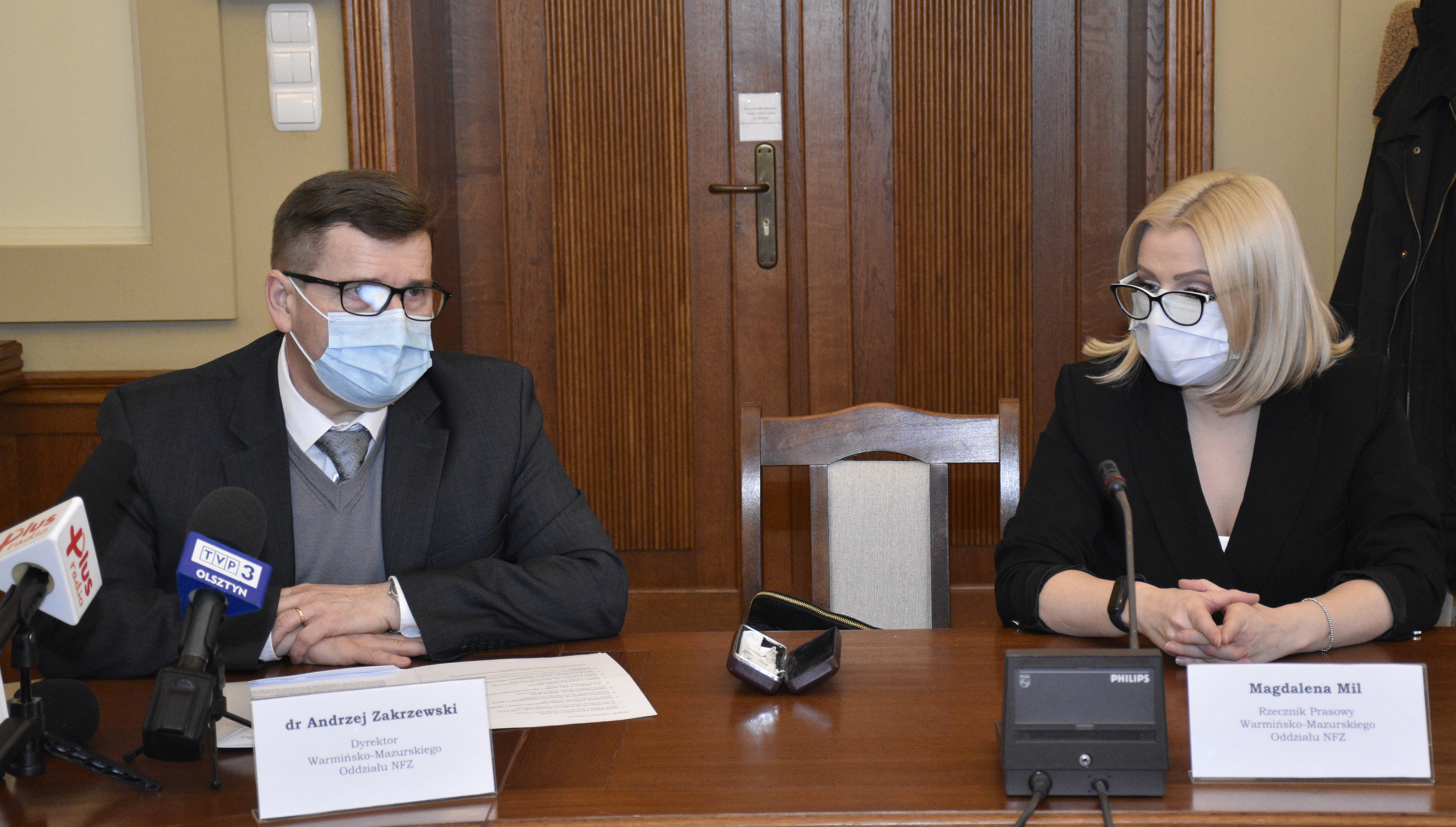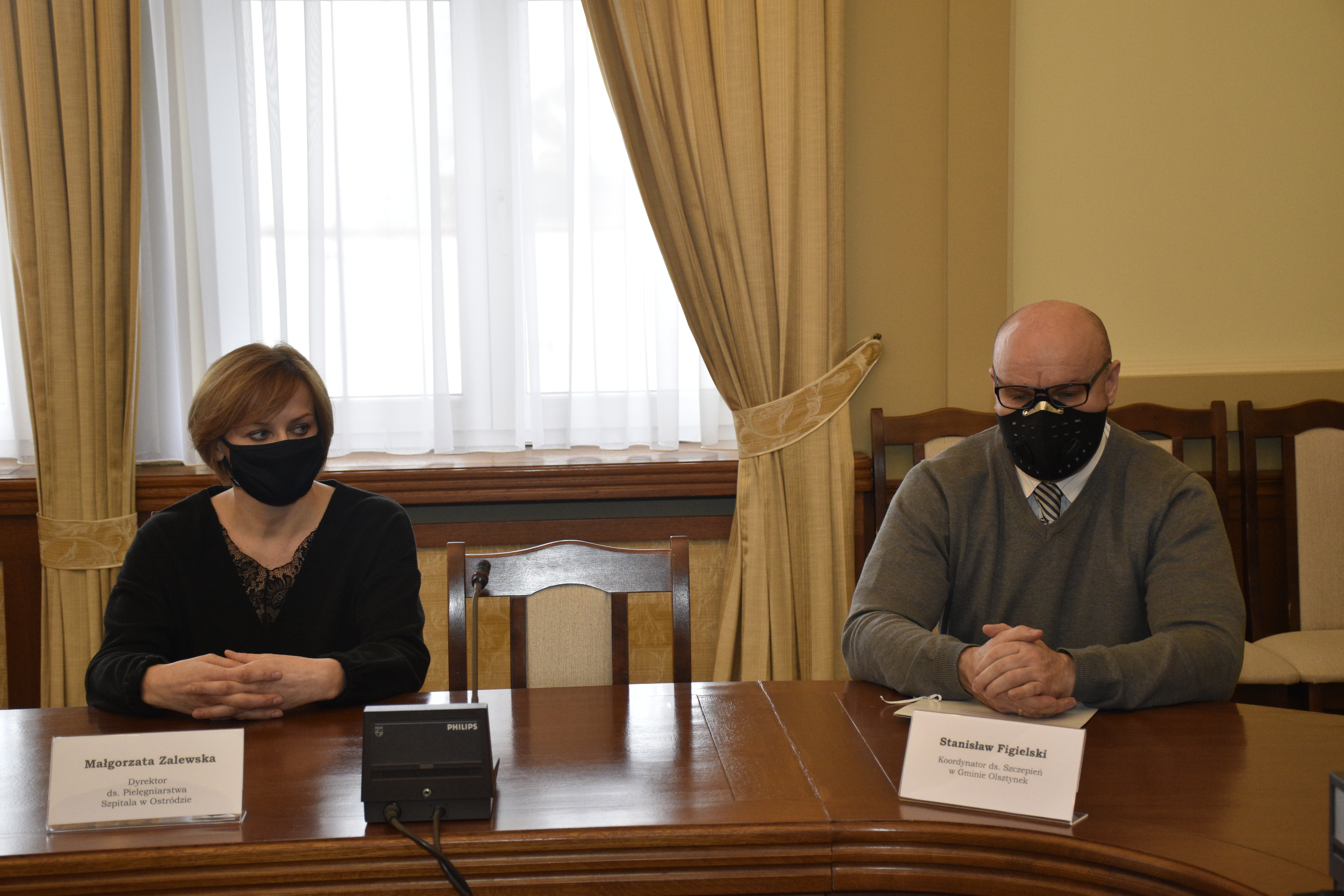 W konferencji uczestniczyli również: dr Andrzej Zakrzewski, dyrektor Warmińsko-Mazurskiego Oddziału NFZ, Magdalena Mil, rzecznik prasowy Warmińsko-Mazurskiego Oddziału NFZ, Małgorzata Zalewska, dyrektor ds. Pielęgniarstwa Szpitala w Ostródzie oraz Stanisław Figielski koordynator ds. szczepień w gminie Olsztynek.