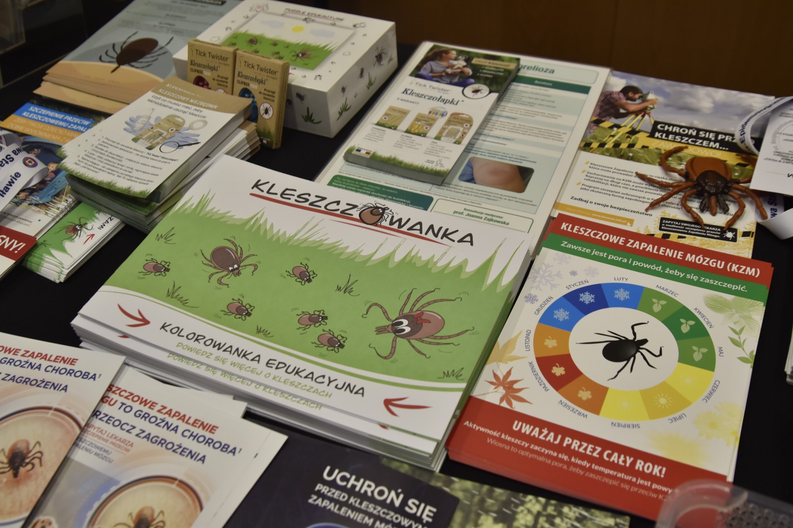 stoiska informacyjno-edukacyjne, na których uczestnicy mogli porozmawiać z ekspertami, otrzymać materiały edukacyjne oraz zapoznać się z przykładami praktycznych rozwiązań chroniących przed kleszczami,