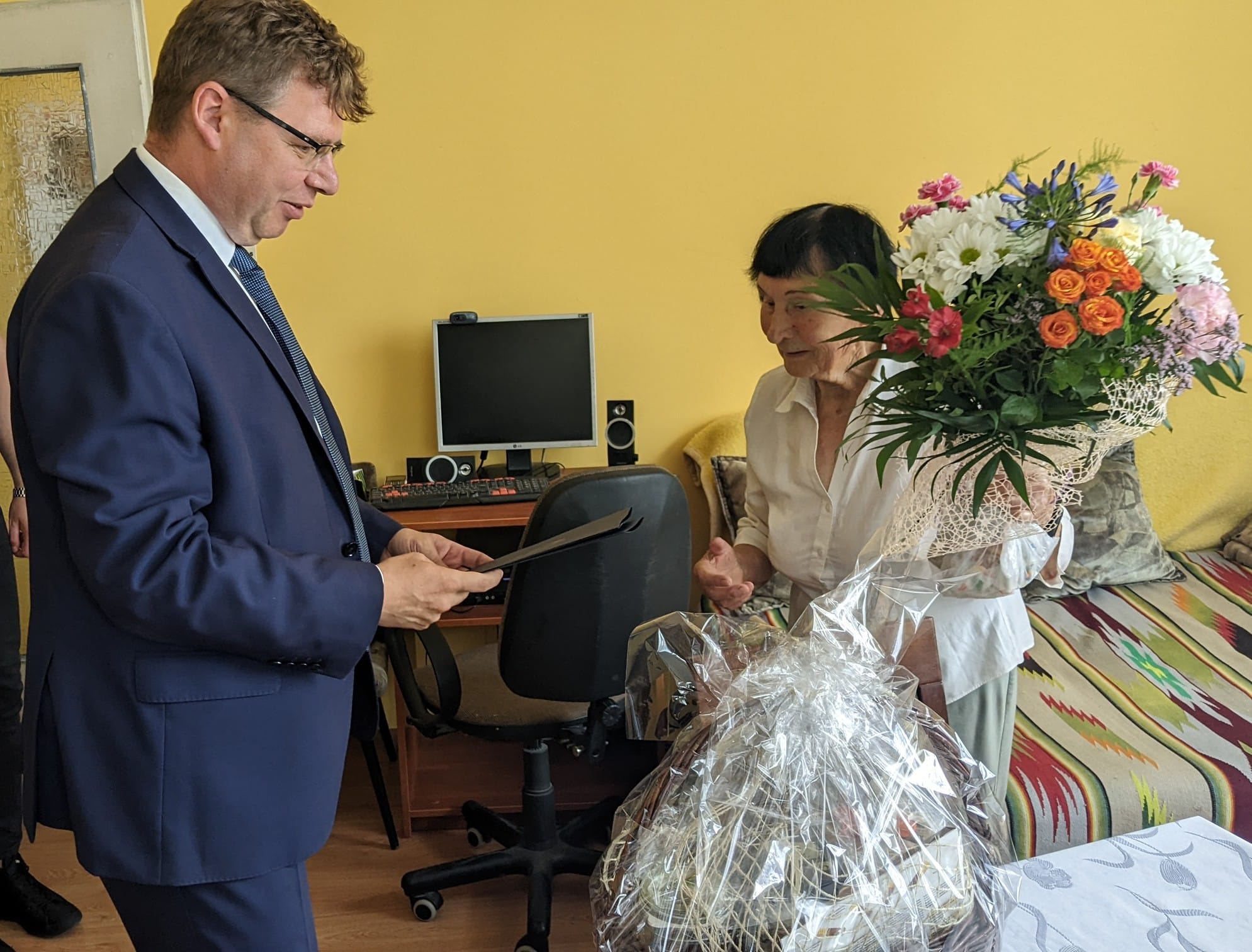 Dziś Wojewoda Warmińsko-Mazurski Artur Chojecki złożył wizytę Pani Danucie Filipek i przekazał najlepsze życzenia z okazji 93. rocznicy urodzin.