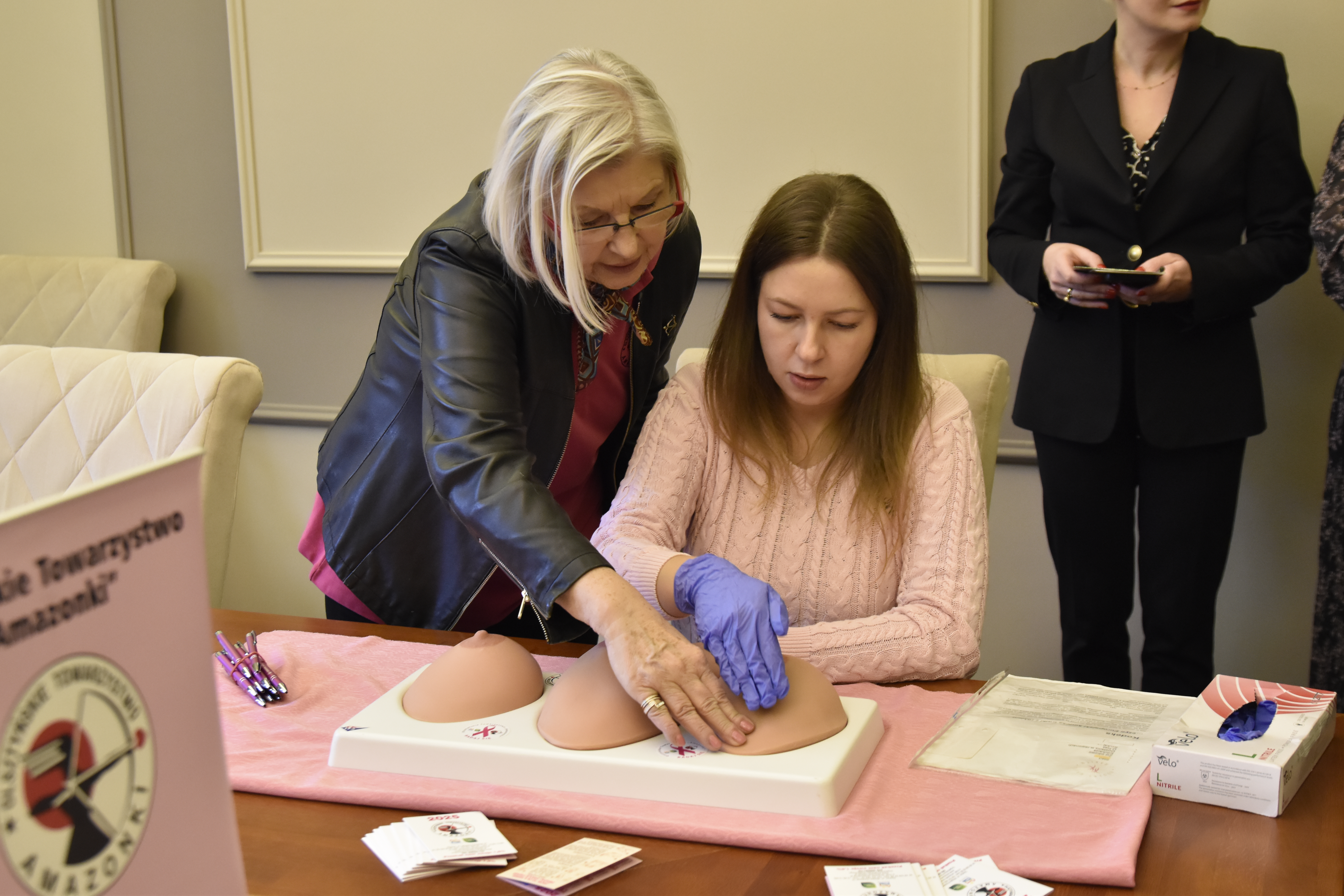 Olsztyńskie Amazonki odwiedziły Warmińsko-Mazurski Urząd Wojewódzki w Olsztynie, by najpierw w formie krótkiej prelekcji, a następnie lekcji praktycznej pokazać pracownikom urzędu jak ważne jest samobadanie w profilaktyce raka piersi.