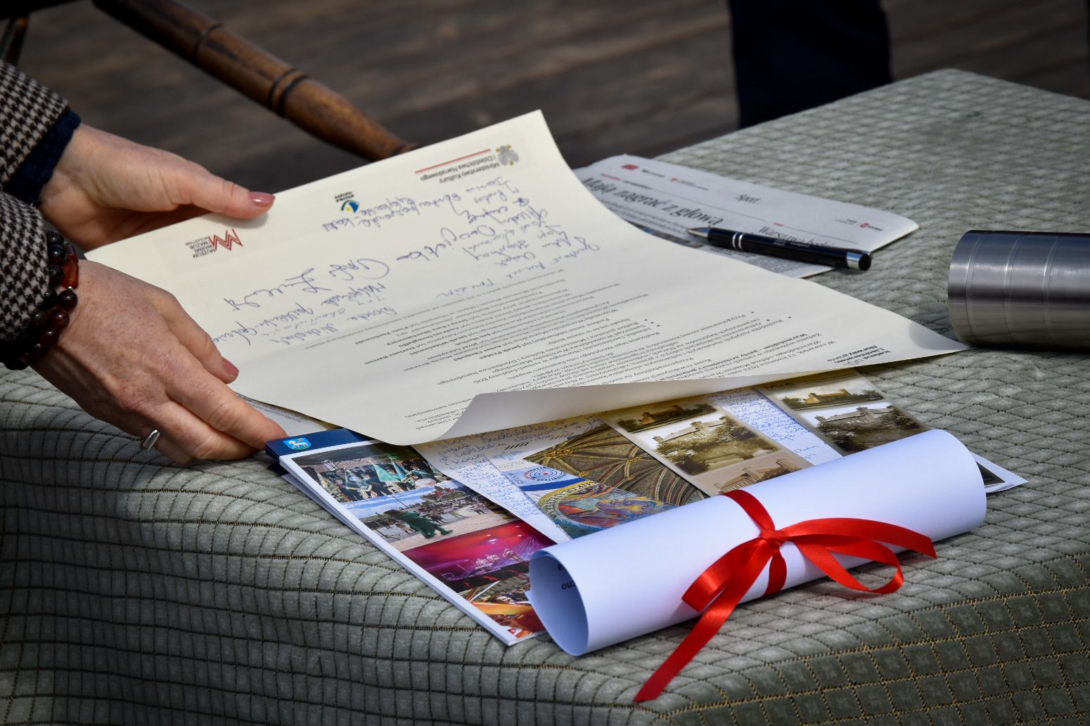 Podczas uroczystości, w jednym z filarów mostu wmurowana została kapsuła czasu, w której Wojewoda umieścił grafikę autorstwa Wojciecha Korkucia przygotowaną z okazji 550. rocznicy urodzin Mikołaja Kopernika oraz 480. rocznicy jego śmierci.