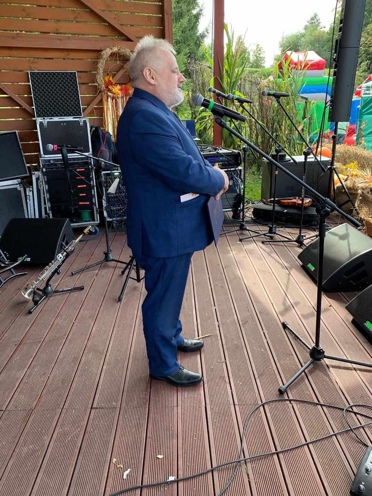 Gospodarz wydarzenia, Wójt Gminy Kolno Mariusz Wrona, przywitał wszystkich zebranych i podziękował rolnikom za ich ciężką pracę. Zaznaczył, że dożynki są ważnym elementem tożsamości gminy Kolno, integrującym społeczność lokalną i podkreślającym wagę tradycji.