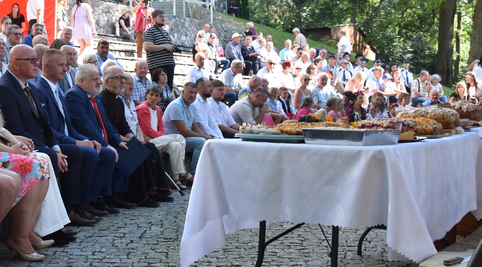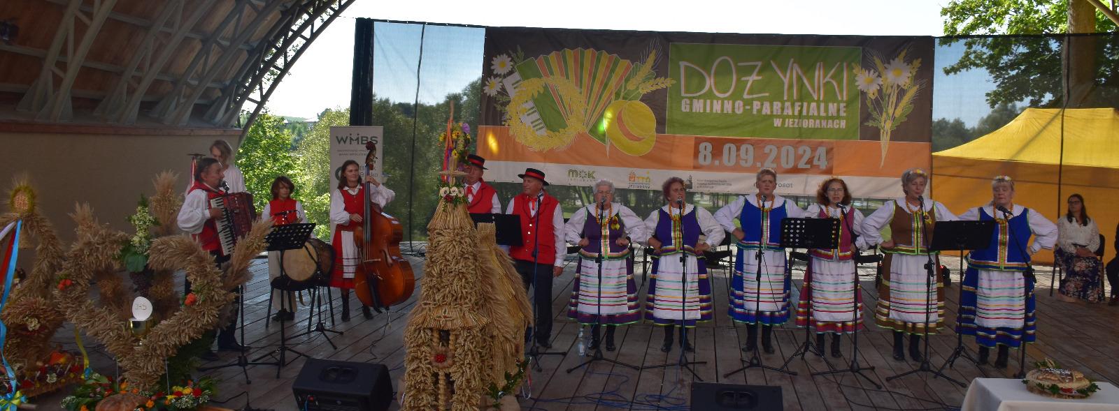 Po Mszy Świętej w intencji rolników uczestnicy przeszli w barwnym korowodzie na plac dożynkowy, prowadzonym przez delegacje sołectw, niosące przepięknie udekorowane wieńce dożynkowe. Każdy z nich był misternie wykonany z kłosów zbóż, kwiatów i owoców. W amfiteatrze odbyły się tradycyjne obrzędy dożynkowe, w tym przekazanie bochna chleba wypieczonego z tegorocznej mąki na ręce burmistrza Jezioran Łukasza Szpary. Symboliczny chleb, który następnie został podzielony wśród uczestników, był znakiem dziękczynienia za owoce pracy rolników. Po oficjalnych obrzędach przyszła pora na część rozrywkową. Na scenie pojawiły się lokalne zespoły ludowe, które zaprezentowały pieśni i tańce charakterystyczne dla warmińskiego regionu: Jezioranie, MALWA. Hanna Banasiak z olsztyńskiego Teatru Lalek przygotowała spektakl dla dzieci „Zieleń, nie zieleń”, który spotkał się z entuzjazmem.