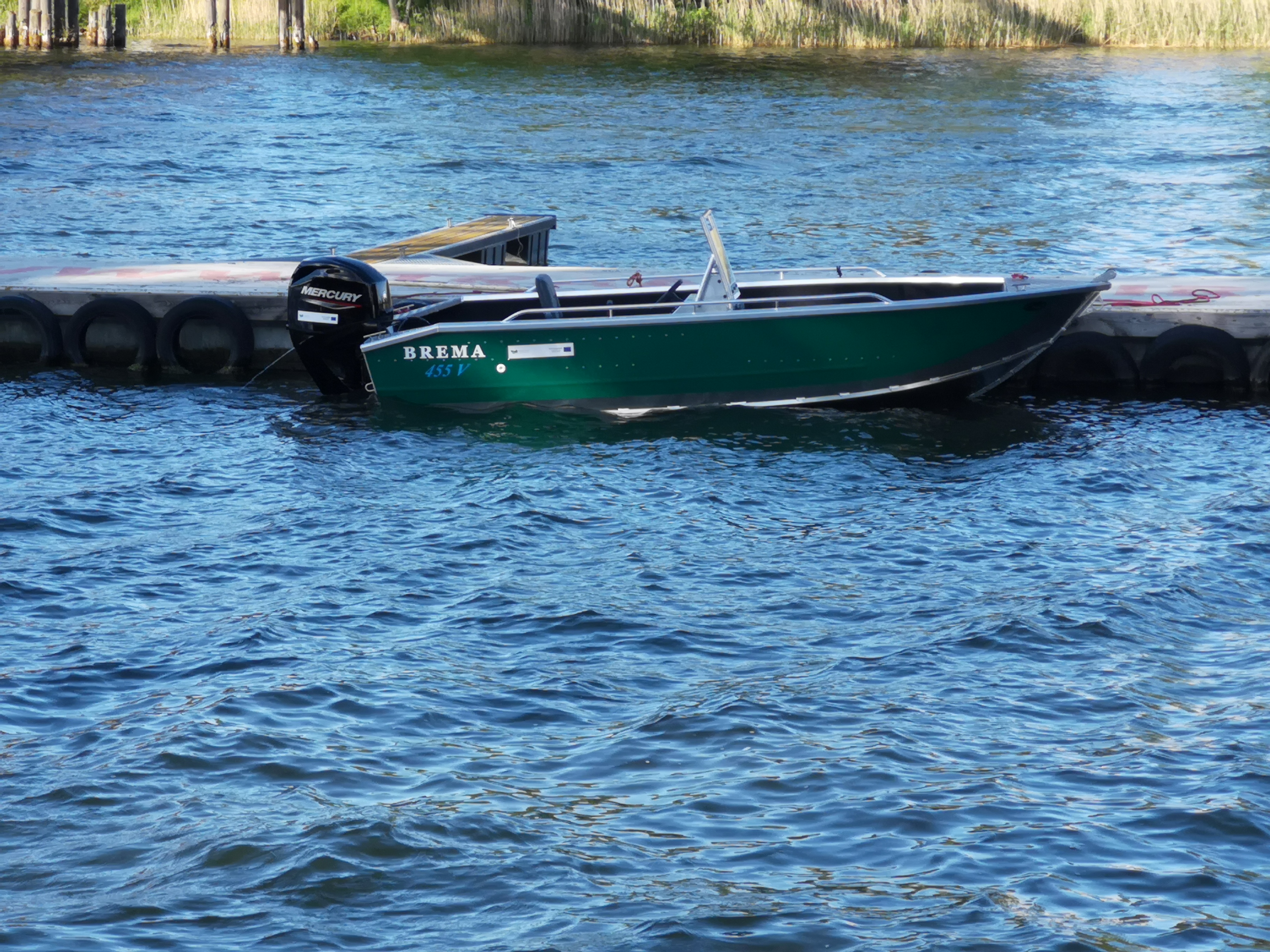 Dwie aluminiowe łodzie motorowe Brema 455V z silnikami Mercury 50KM zakupione w ramach realizacji przedsięwzięcia pod nazwą: „Doposażenie Państwowej Straży Rybackiej w Olsztynie w celu zwiększenia efektywności kontroli przestrzegania przepisów ustawy o rybactwie śródlądowym”