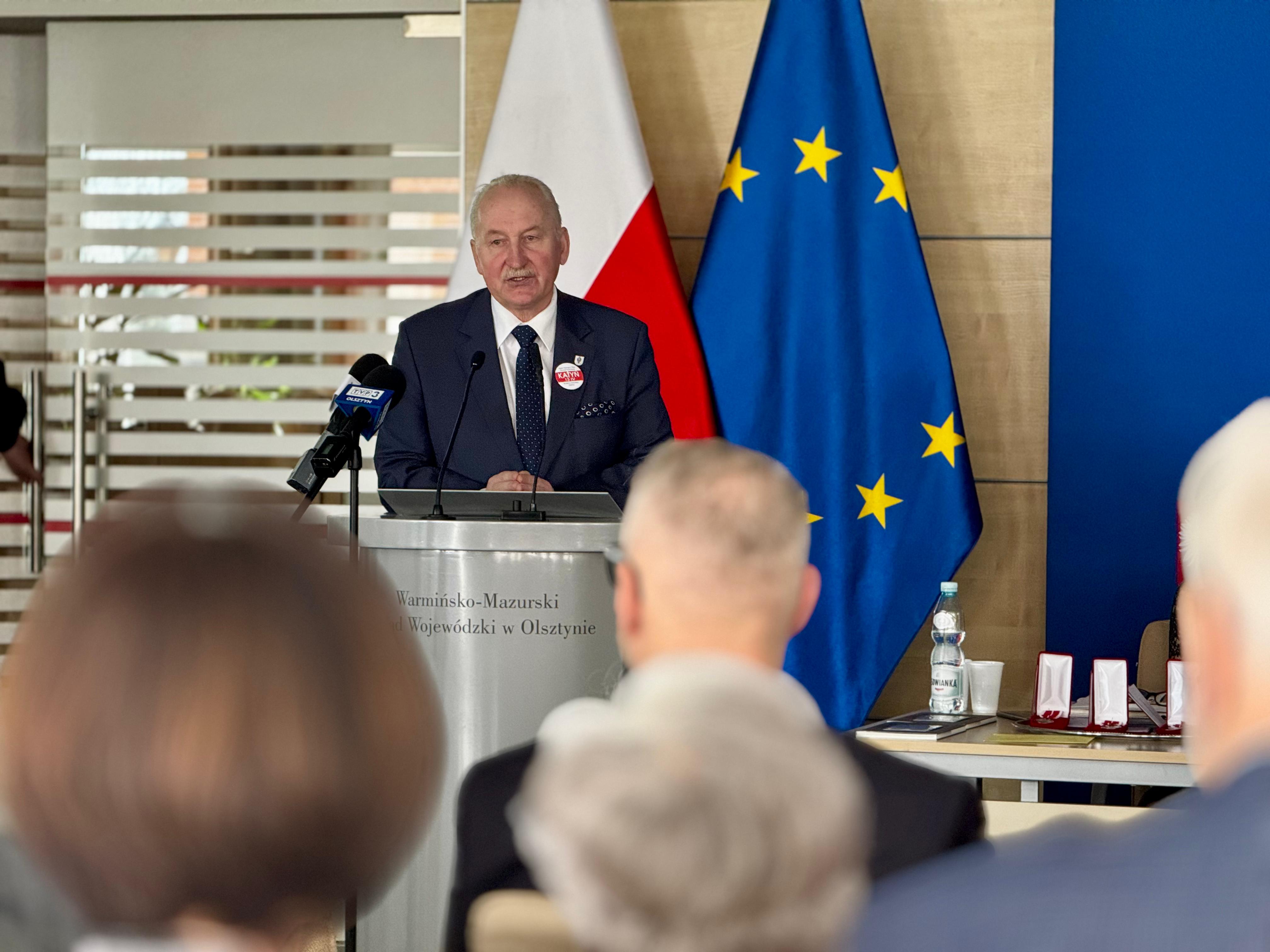 Dziś w gmachu Urzędu Wojewódzkiego odbyła się konferencja „Pamięć o Ofiarach Zbrodni Katyńskiej wciąż żywa” oraz uroczyste obchody Jubileuszu 35-lecia Stowarzyszenia Rodzina Katyńska w Olsztynie. W wydarzeniu udział wziął Wojewoda Warmińsko-Mazurski Radosław Król, który objął konferencję patronatem honorowym.