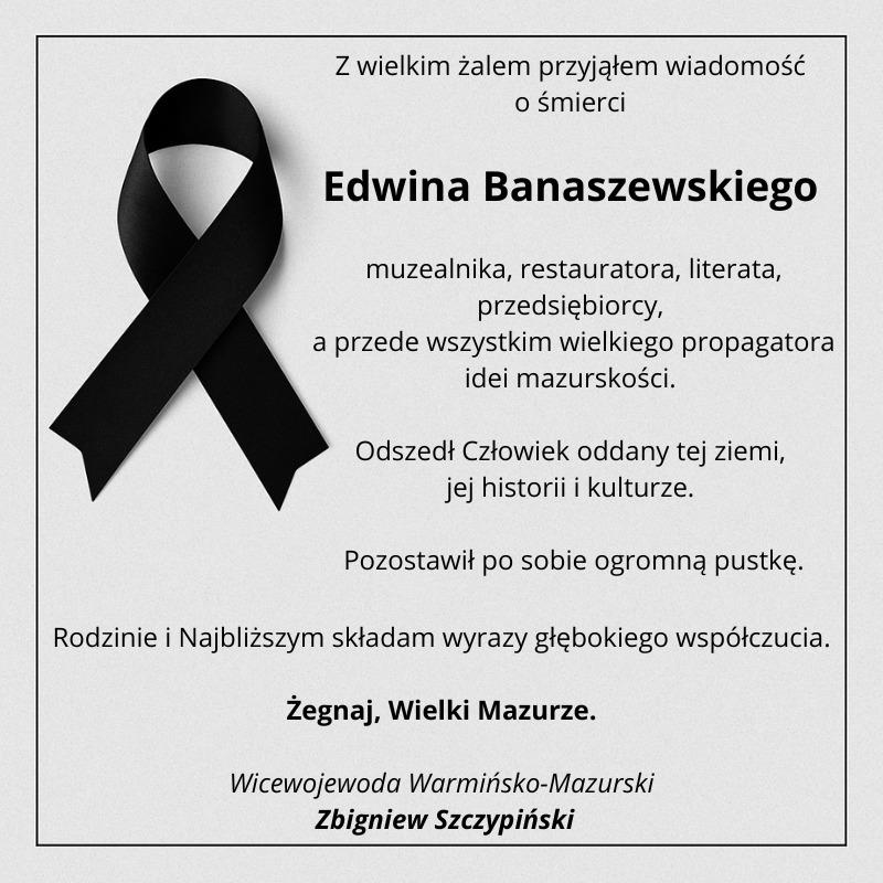 Trudno pogodzić się z myślą, że Edwina Banaszewskiego nie ma już wśród nas. Odszedł człowiek niezwykły – mazurski opowiadacz, strażnik lokalnej tożsamości, ale też odważny przedsiębiorca i artystyczna dusza. Zostawił po sobie nie tylko puste miejsce, ale przede wszystkim trwałe ślady – w pamięci, słowie, działaniu.